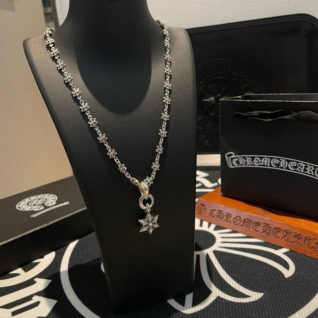 New counter quality Chrome Hearts classic retro cross flower necklace hexagram pendant with concave and convex shapes and different patterns and design styles , showing a unique cross. The Scout flower is the symbol of Chrome Hearts, so it is more enduring. The genuine version of Chrome Hearts is different from the ordinary light version on the market. The quality is compared with the version. Look at the printing details and the degree of retro aging and gray oxygen. Seiko version!!! Purely handmade ~ authentic mold opening, trendy and fashionable, must-have for men and women, can be worn by couples, original official website rock punk Thai silver style, retro elements, trendy and versatile!