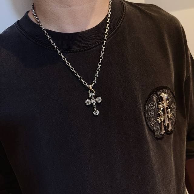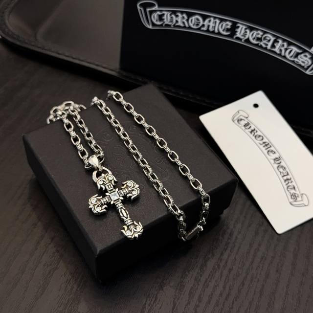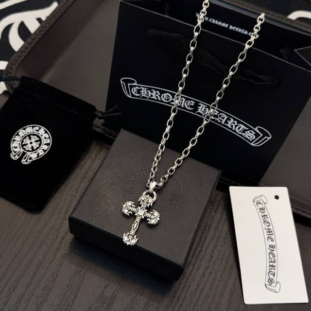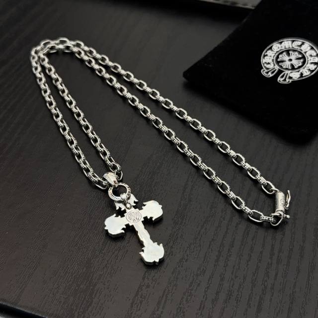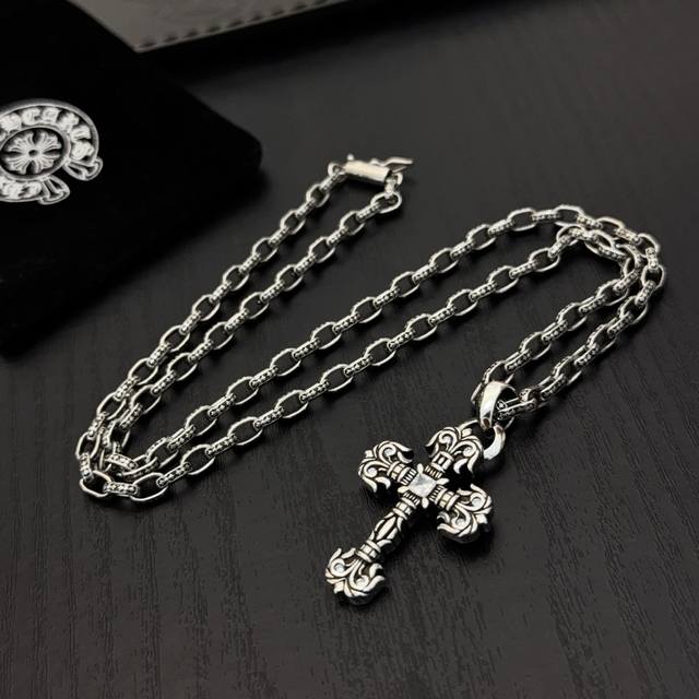 New counter quality Chrome Hearts classic retro cross necklace, flame cross pendant with concave and convex shapes and different patterns and design styles, showing a unique cross. The Scout flower is the symbol of Chrome Hearts, so it is more enduring. The genuine version of Chrome Hearts is different from the ordinary light version on the market. The quality is compared with the version. Look at the printing details, retro and old-fashioned gray and oxygen. Seiko version!!! Purely handmade ~ authentic mold opening, trendy and fashionable, must-have for men and women, can be worn by couples, original official website rock punk Thai silver style, retro elements, trendy and versatile!