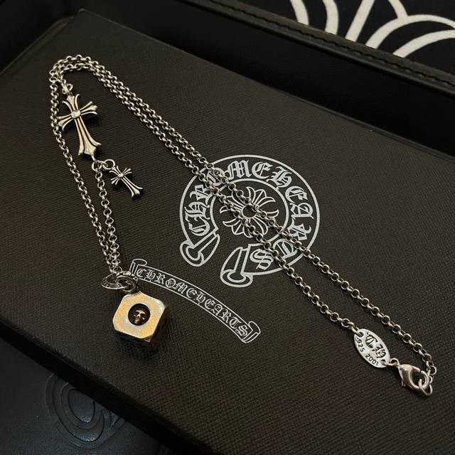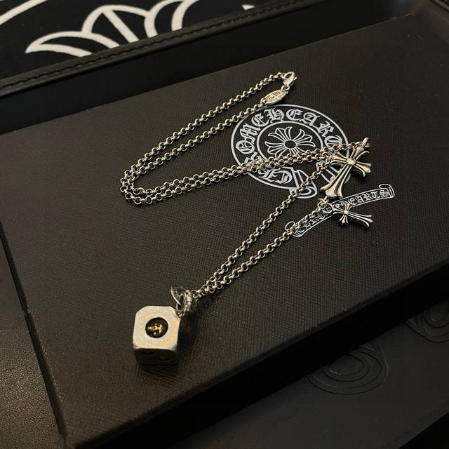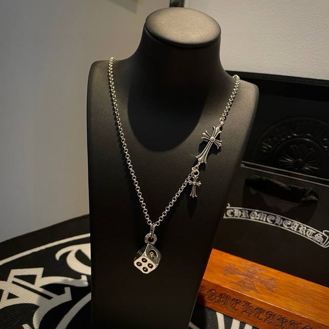 New counter quality Chrome Hearts classic retro cross necklace skull dice pendant with concave and convex shapes and different patterns and design styles, showing a unique cross and scout flower is the symbol of Chrome Hearts, so it is more enduring. Authentic Chrome Hearts is different from ordinary light versions on the market. The quality is compared with the version. Look at the printing details for retro and old-fashioned gray and oxygen levels. Seiko version!!! Purely handmade ~ Authentic mold opening, trendy and fashionable, must-have for men and women, can be worn by couples, original official website rock punk Thai silver style, retro elements, trendy and versatile!