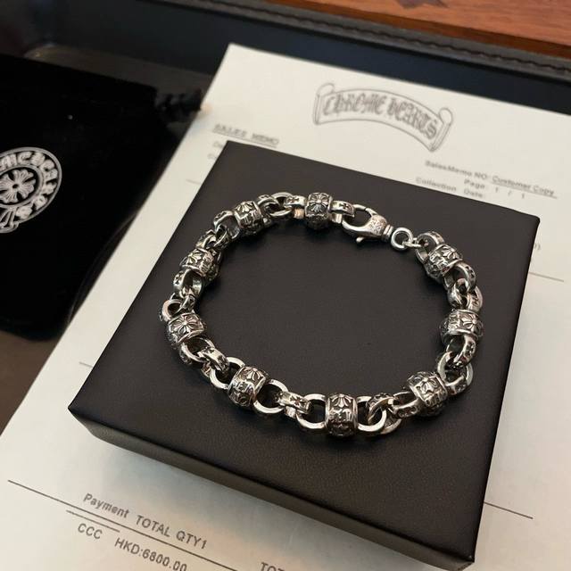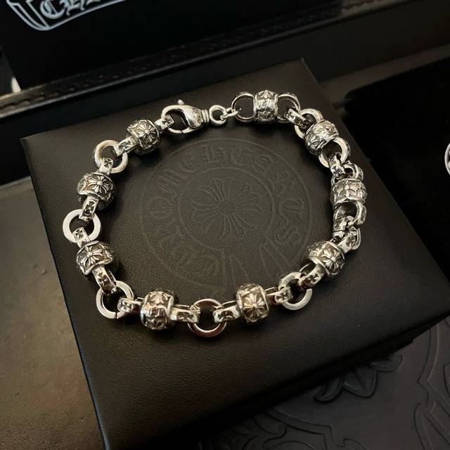 New counter quality Chrome Hearts classic retro distressed cross flower ball bracelet, the original concave and convex shape and different pattern design style present a unique cross. The Scout flower is the symbol of Chrome Hearts, so it is more enduring. The genuine version of Chrome Hearts is different from the ordinary light version on the market. The quality is compared with the version. Look at the printing details and the degree of retro distressed gray oxygen. Seiko version!!! Purely handmade ~ authentic mold opening, trendy and fashionable, a must-have for men and women, can be worn by couples, the official website original rock punk Thai silver style, retro elements, trendy and versatile!