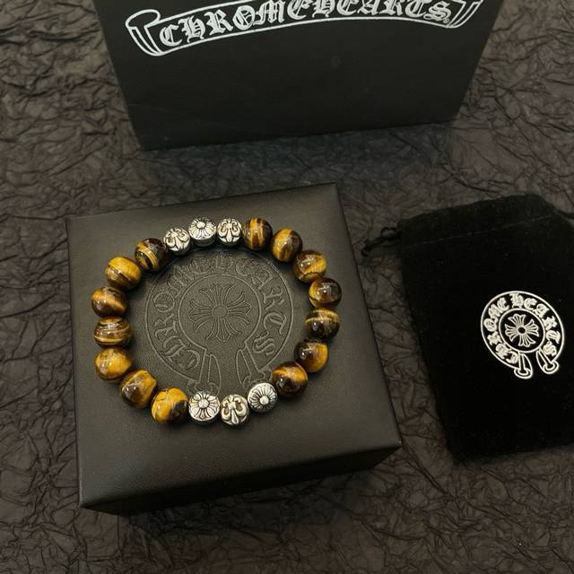 New counter quality Chrome Hearts classic retro multi-element tiger's eye stone bracelet, with different concave and convex shapes and design styles, showing a unique cross and scout flower. It is the symbol of Chrome Hearts, so it is more enduring. The genuine version of Chrome Hearts is different from the ordinary light version on the market. The quality is compared with the version. Look at the printing details and the degree of retro and old gray oxygen. Seiko version!!! Purely handmade ~ authentic mold opening, trendy and fashionable, a must-have for men and women, can be worn by couples, the official website original rock punk Thai silver style, retro elements, trendy and versatile!