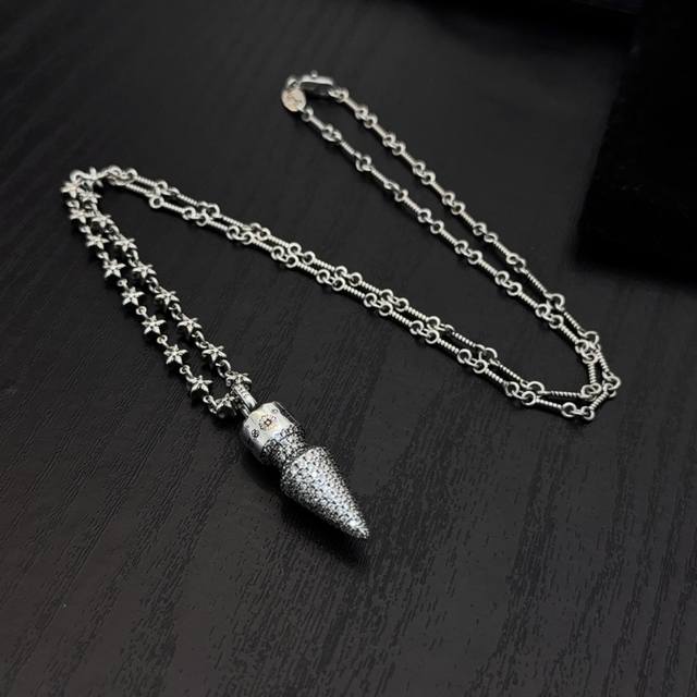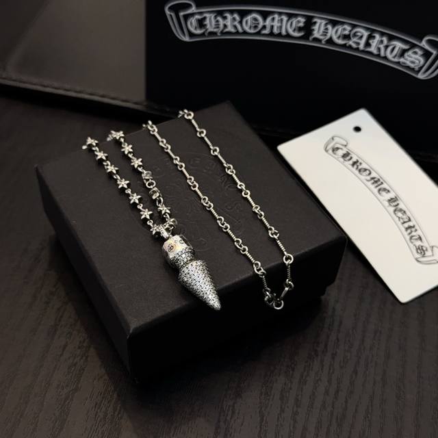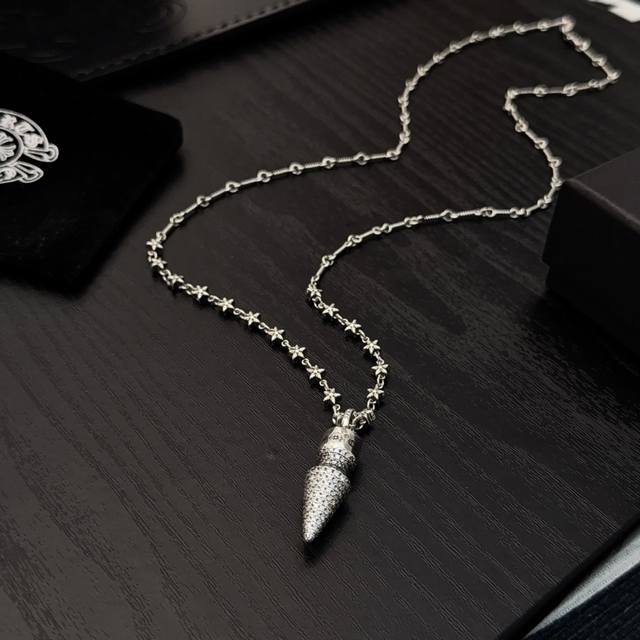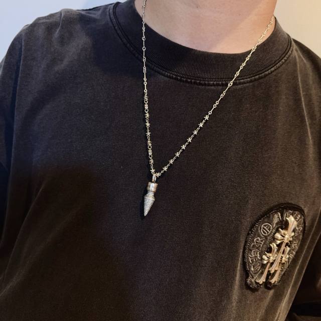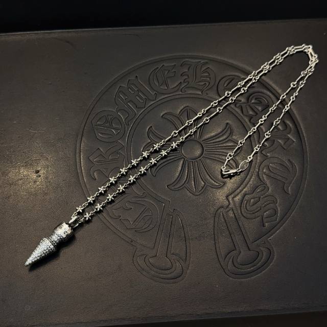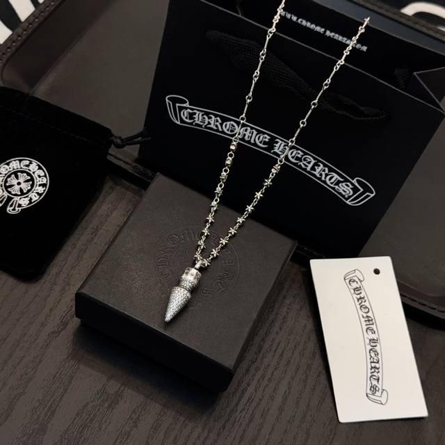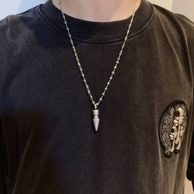 New counter quality Chrome Hearts classic retro necklace with full diamond bullet pendant with concave and convex shapes and different patterns and design styles, showing a unique cross and scout flower is the symbol of Chrome Hearts, so it is more enduring. Authentic Chrome Hearts is different from ordinary light versions on the market. The quality is compared with the version. Look at the printing details for retro and old-fashioned gray and oxygen levels. Seiko version!!! Purely handmade ~ Authentic mold opening, trendy and fashionable, must-have for men and women, can be worn by couples, original official website rock punk Thai silver style, retro elements, trendy and versatile!