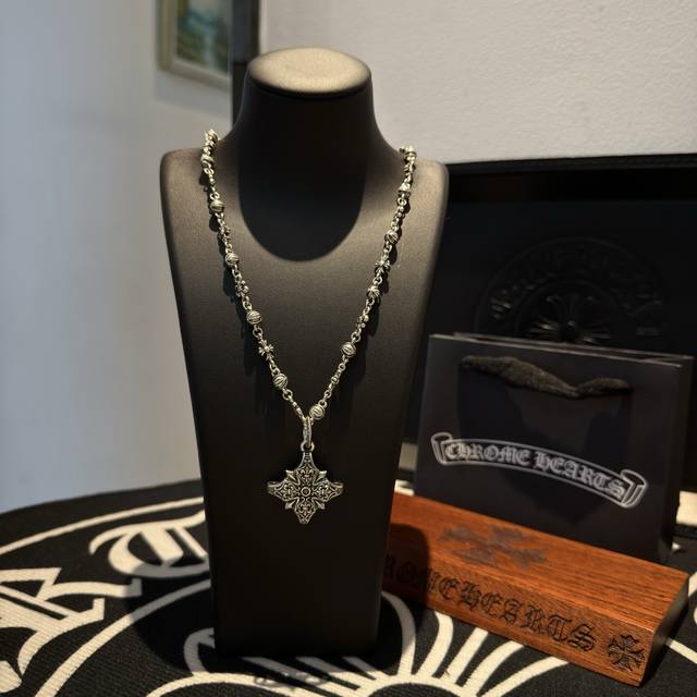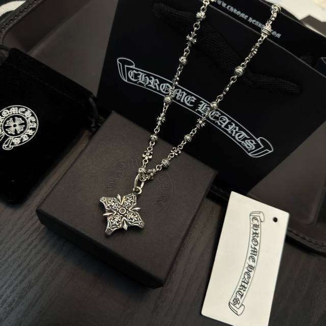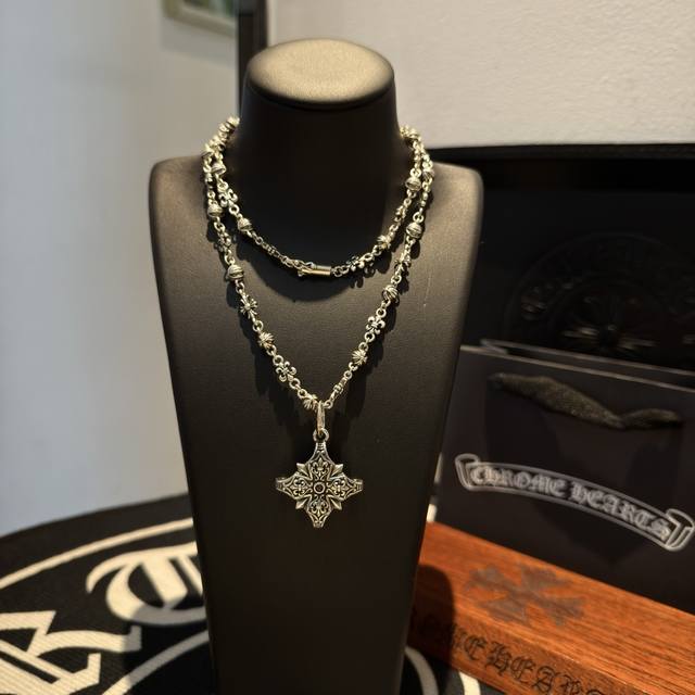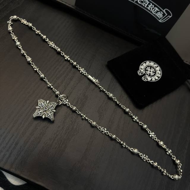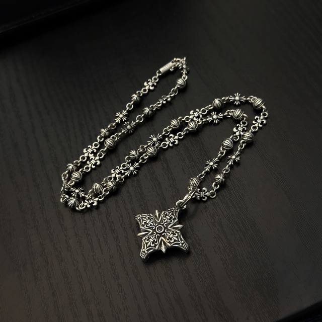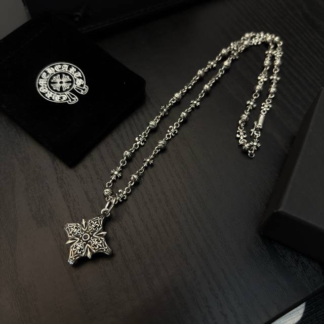 New counter quality Chrome Hearts retro cross flower ball necklace, cross flower pendant with concave and convex shapes and different patterns and design styles, showing a unique cross. The Scout flower is the symbol of Chrome Hearts, so it is more enduring. The genuine version of Chrome Hearts is different from the ordinary light version on the market. The quality is compared with the version. Look at the printing details and the degree of retro aging and gray oxygen. Seiko version! ! ! Purely handmade ~ authentic mold opening, trendy and fashionable, must-have for men and women, can be worn by couples, original official website rock punk Thai silver style, retro elements, trendy and versatile!
