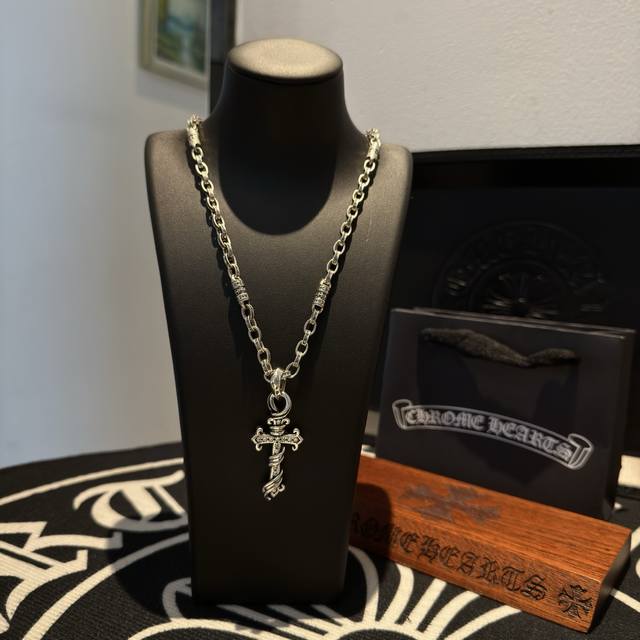 New counter quality Chrome Hearts retro cross necklace with full diamond cross pendant with concave and convex shapes and different patterns and design styles, showing a unique cross. The scout flower is the symbol of Chrome Hearts, so it is more enduring. The genuine version of Chrome Hearts is different from the ordinary light version on the market. The quality is compared with the version. Look at the printing details and the degree of retro aging and gray oxygen. Seiko version! ! ! Purely handmade ~ authentic mold opening, trendy and fashionable, must-have for men and women, can be worn by couples, original official website rock punk Thai silver style, retro elements, trendy and versatile!