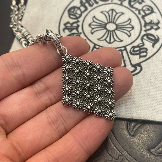 Popular on Douyin, Kuaishou, Ins, and Xiaohongshu live streams: New boutique quality Chrome Hearts classic cross necklace with a diamond-shaped cross pendant. The unique design features different patterns and styles. The cross and scout flower are Chrome Hearts' signature elements, making it timeless. Authentic Chrome Hearts replica, distinguishing it from ordinary market versions. Quality is guaranteed; look at the details of the lettering and the vintage, distressed finish. Exquisite craftsmanship! Handmade! Authentic mold, trendy and fashionable, a must-have for men and women, suitable for couples. Official website original, rock punk Thai silver style, retro elements, trendy and versatile!