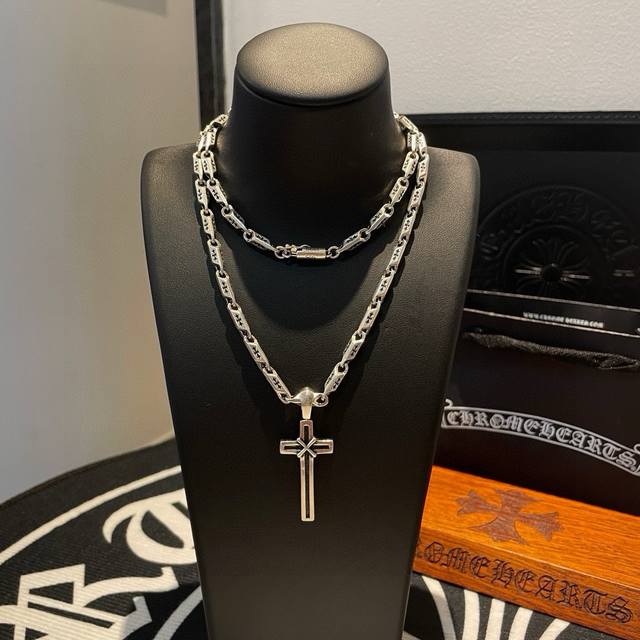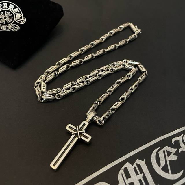 Popular on Douyin, Kuaishou, Ins, and Xiaohongshu live streams: New boutique quality Chrome Hearts classic retro cross necklace with a cross pendant. The embossed design and different patterns create a unique look. The cross and scout flower are Chrome Hearts' signature elements, making it timeless. Authentic Chrome Hearts replica, different from ordinary versions on the market. High-quality replica, check the details of the lettering and the vintage distressed finish. Exquisite craftsmanship! Handmade! Authentic mold, trendy and fashionable, a must-have for men and women, suitable for couples. Official website original, rock punk Thai silver style, retro elements, trendy and versatile!