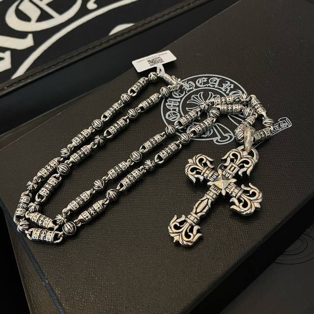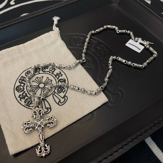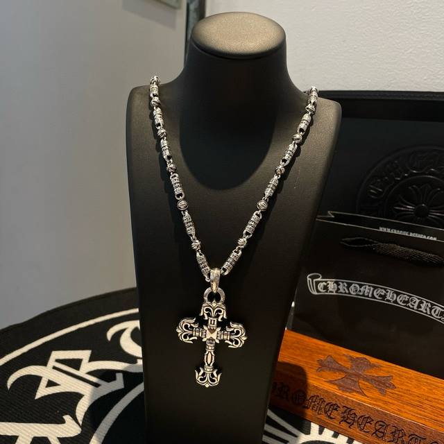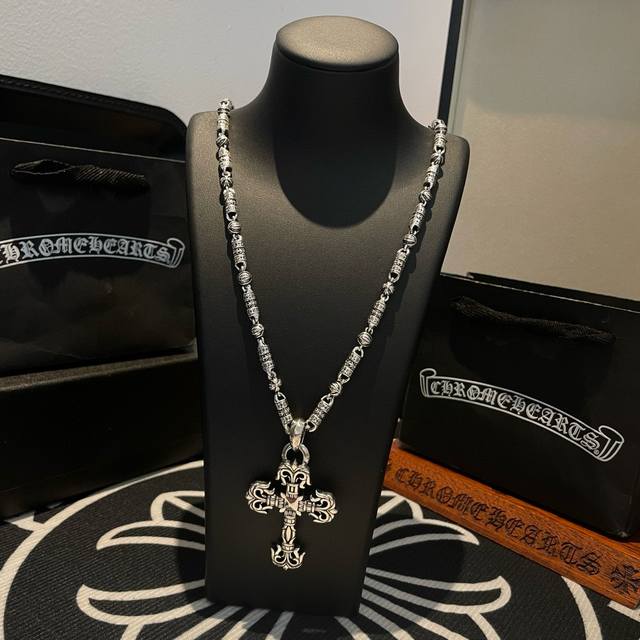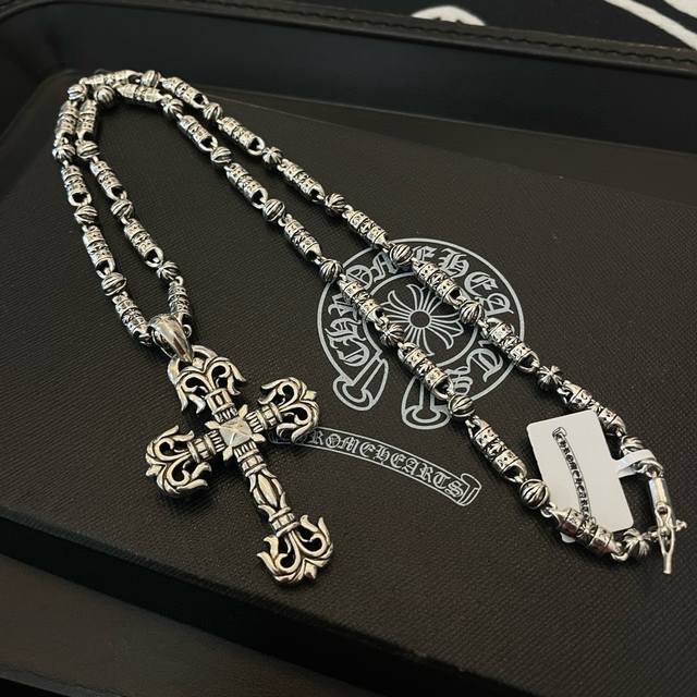 Popular on Douyin, Kuaishou, Ins, and Xiaohongshu live streams: New boutique quality Chrome Hearts cross flower ball necklace, large flame cross pendant, unique design with different textures and patterns. The cross and scout flower are the symbol of Chrome Hearts, making it timeless. Authentic Chrome Hearts replica, different from ordinary market versions. Quality is comparable to the original, look at the details of the lettering and the vintage distressed finish. Exquisite craftsmanship! Purely handmade~ Authentic mold, trendy and fashionable, a must-have for men and women, suitable for couples. Official website original, rock punk Thai silver style, retro elements, trendy and versatile!