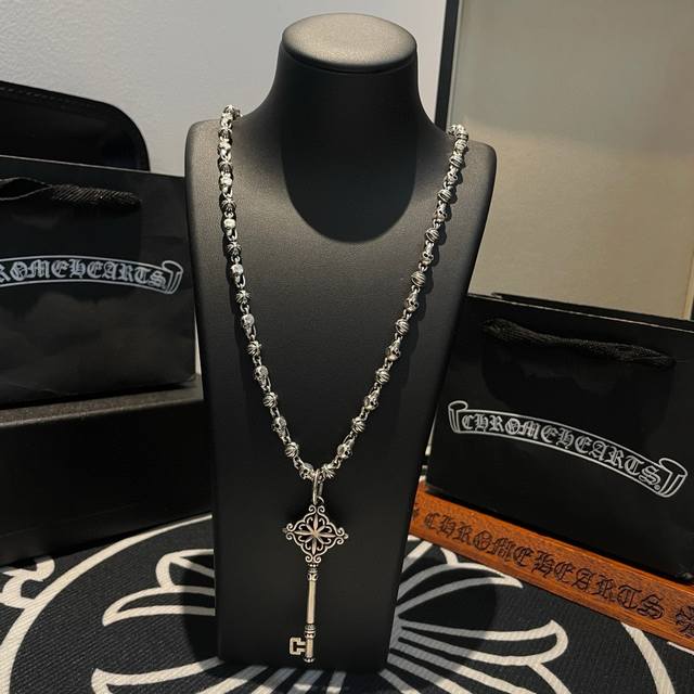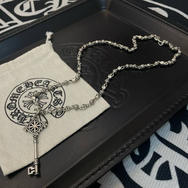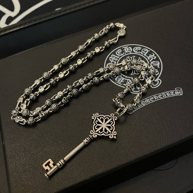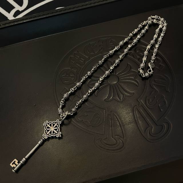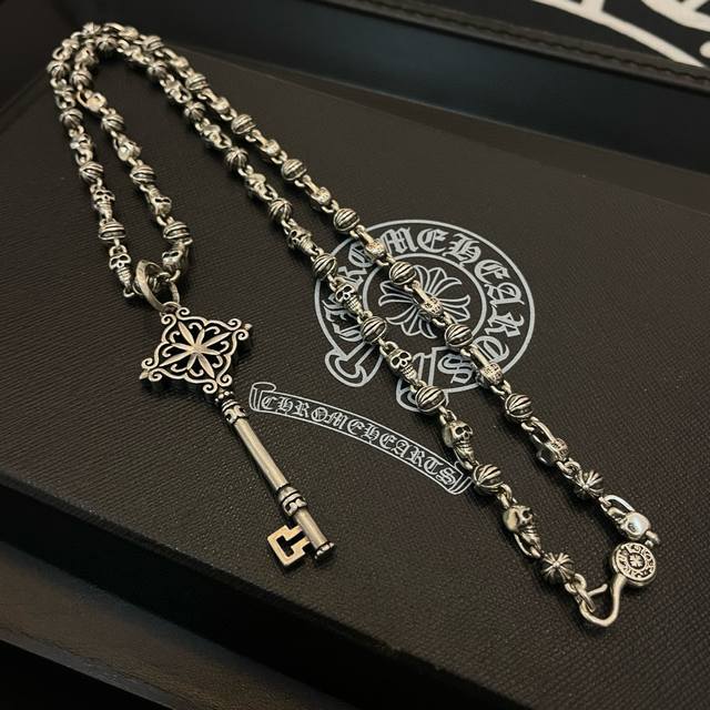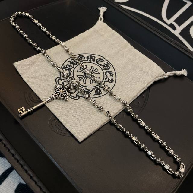 Popular on Douyin, Kuaishou, Ins, and Xiaohongshu live streams. New high-quality Chrome Hearts skull necklace with key pendant. The embossed design and different patterns create a unique look. The cross and scout flower are Chrome Hearts' iconic symbol, making it timeless. Authentic Chrome Hearts replica, different from ordinary versions on the market. High-quality replica with detailed lettering and vintage finish. Exquisite craftsmanship! Handmade! Authentic mold, trendy and fashionable, suitable for both men and women, couples. Official website original, rock punk Thai silver style, retro elements, trendy and versatile!