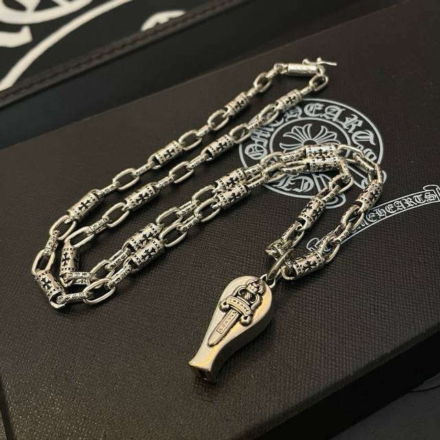 Popular on Douyin, Kuaishou, Ins, and Xiaohongshu Live Streams: New high-quality Chrome Hearts classic retro cross necklace. The sword and whistle pendant features a unique design with different patterns and textures. The cross and scout flower are Chrome Hearts' signature elements, making it timeless. Authentic Chrome Hearts replica, distinguishing it from ordinary versions on the market. High-quality replica with detailed lettering and vintage finish. Exquisite craftsmanship! Handmade! Authentic mold, trendy and fashionable, suitable for both men and women, perfect for couples. Official website original, rock punk Thai silver style, retro elements, trendy and versatile!