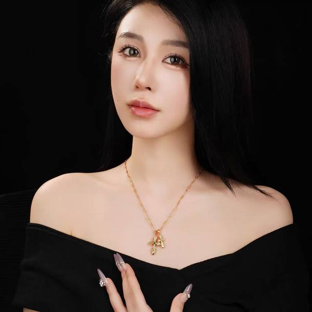 / Zongkeluo heart double cross pendant gold-plated 22K gold diamond bamboo necklac