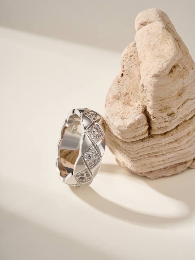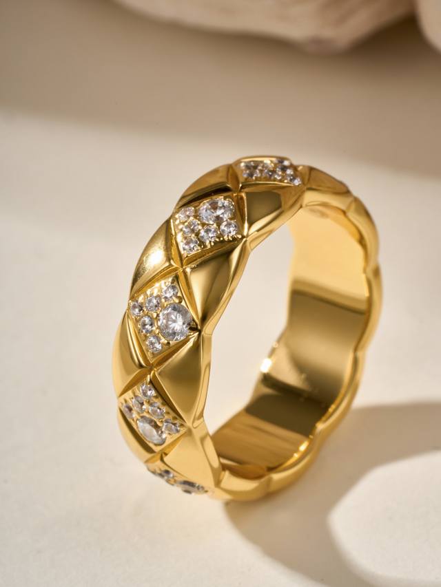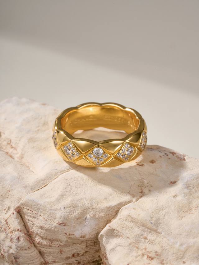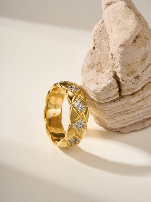 The classic quilted pattern has a full and elegant curve, simple yet luxurious. Layering a delicate diamond-set ring on one finger creates a refined and exquisite look, perfectly complementing each other.