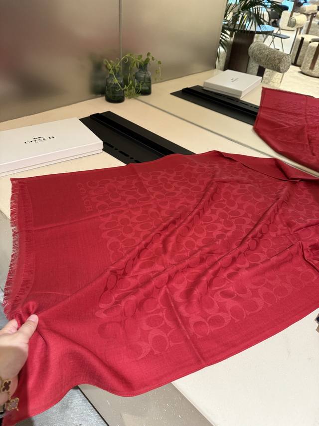 Coach classic scarf/shawl. Every color is beautiful and super comfortable. Elegant and luxurious, medium thickness, can be worn as a shawl. This kind of scarf is most practical when the office is air-conditioned; it's both beautiful and warm. Size: 195*65 mm.