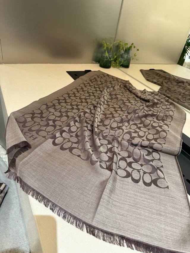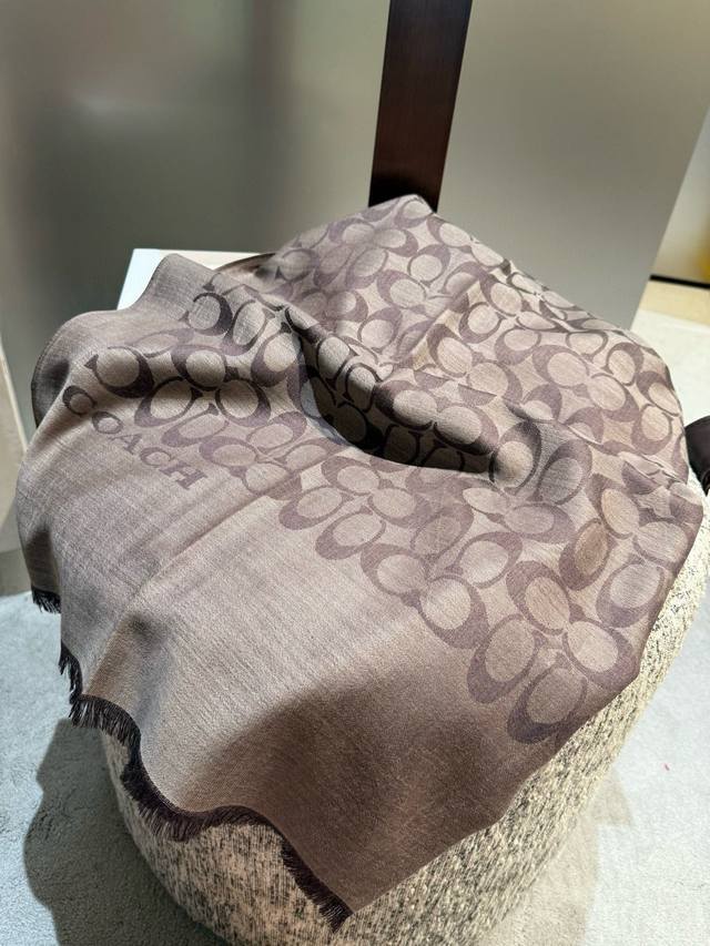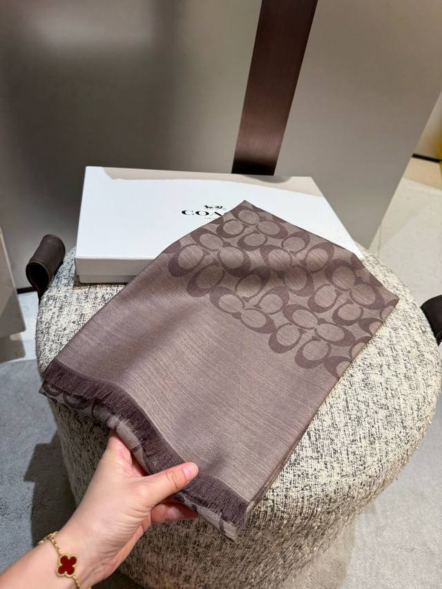 Coach classic scarf/shawl. Every color is beautiful and super comfortable. Elegant and luxurious, medium thickness. Can be worn as a shawl. This kind of scarf is most practical when the office is air-conditioned; it's both beautiful and warm. Size: 195*65 mm.