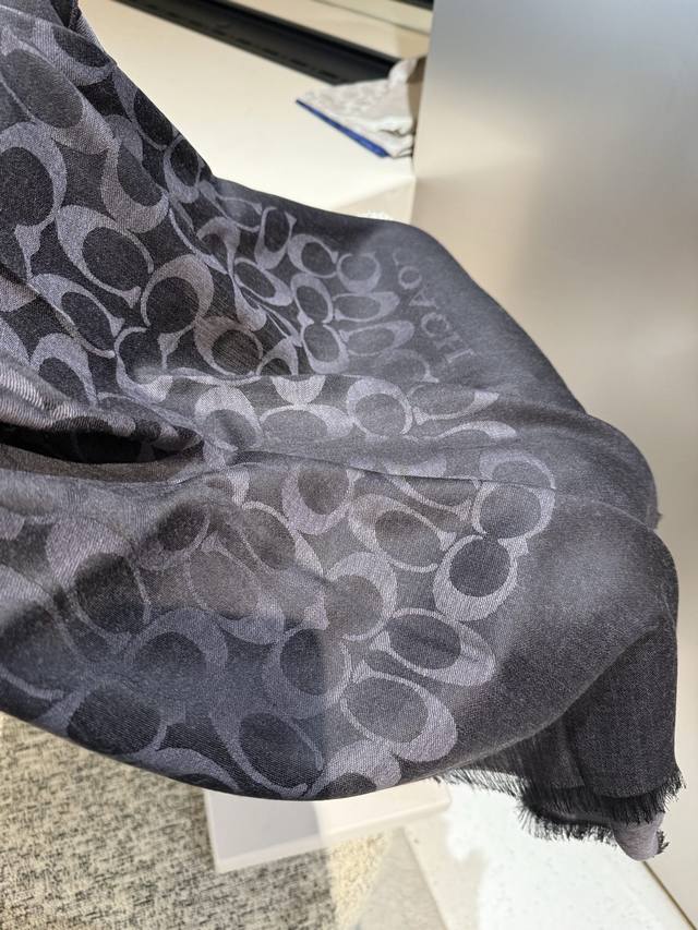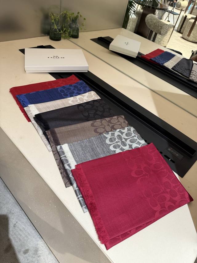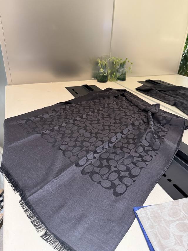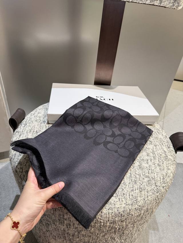 Coach classic scarf/shawl. Every color is beautiful, super comfortable, elegant and luxurious, medium thickness , can be worn as a shawl. This kind of scarf is most practical when the office is air-conditioned, both beautiful and warm. Size: 195*65 mm.