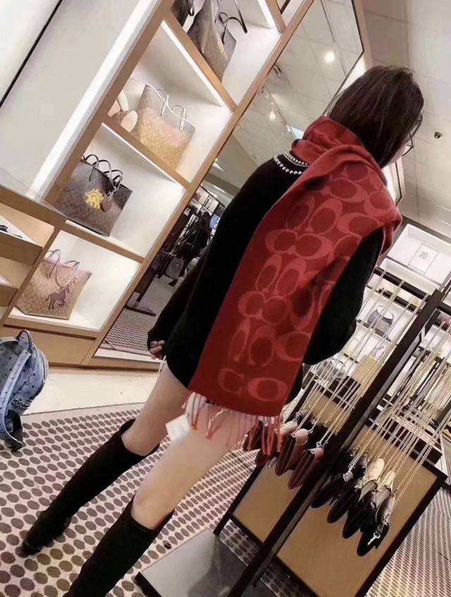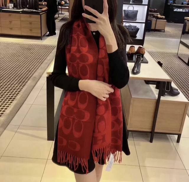 Cocah classic logo oversized scarf is selling like hotcakes! High-end original overstock, complete set and accessories included. The classic Coach C logo is so beautiful! Not only is it stylish, but it's also high-quality. 97% wool + 3% cashmere, it feels incredibly soft and comfortable. The size is 195