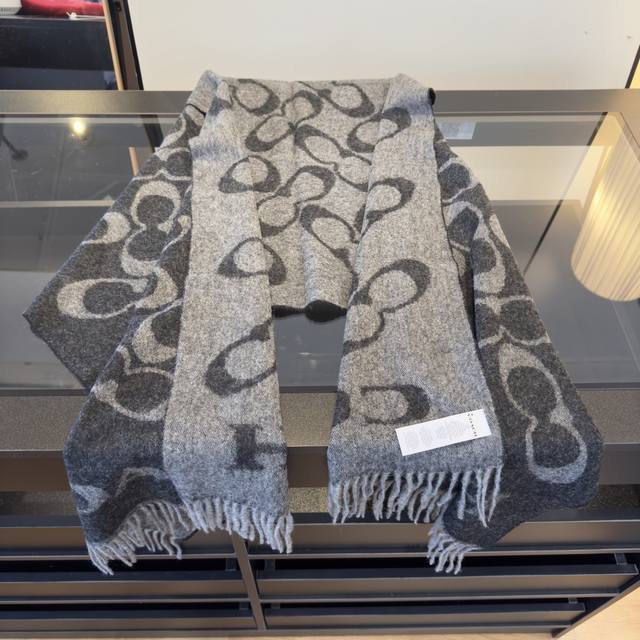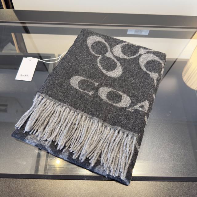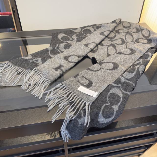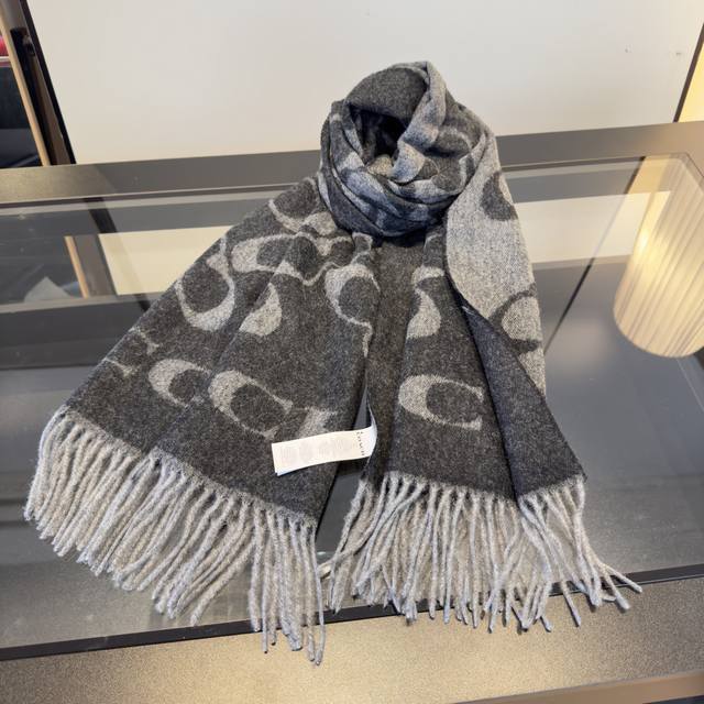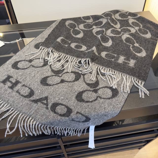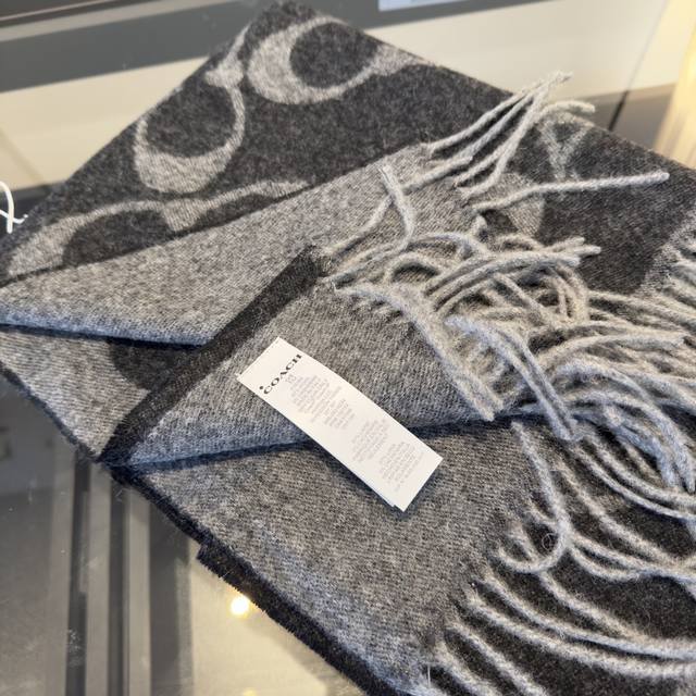 Cocah classic logo oversized scarf is selling like hotcakes! High-end original overstock, complete set and accessories. The classic Coach C logo is so beautiful! Not only is it stylish, but it's also high-quality. 97% wool + 3% cashmere, it feels incredibly soft and comfortable. The size is 195