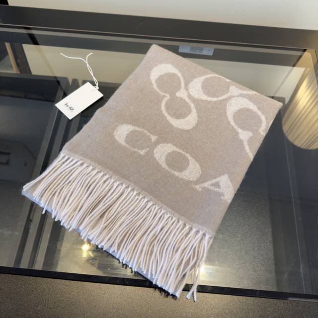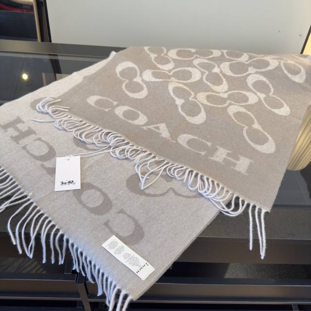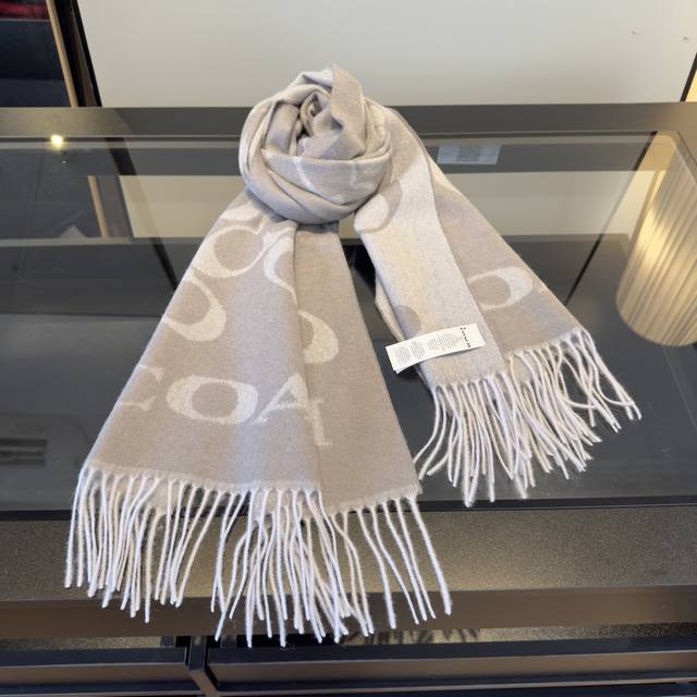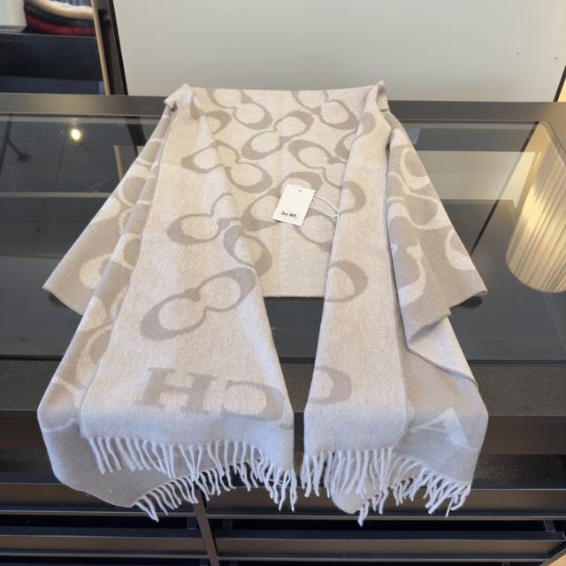 Cocah classic logo oversized scarf is selling like hotcakes! High-end original overstock, complete set and accessories. The classic Coach C logo is so beautiful! Not only is it stylish, but it's also high-quality. 97% wool + 3% cashmere, it feels incredibly soft and comfortable. The size is 195