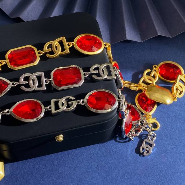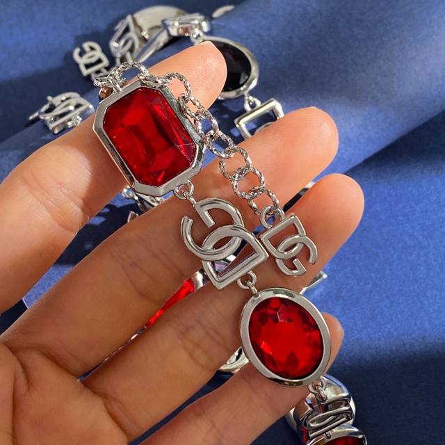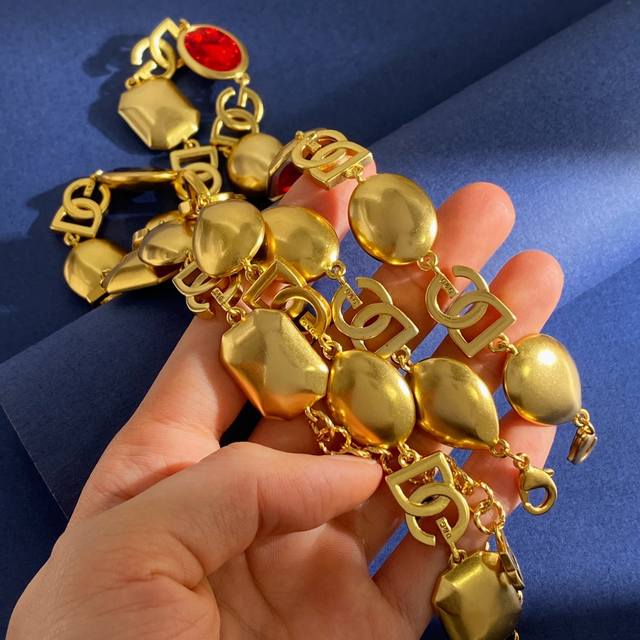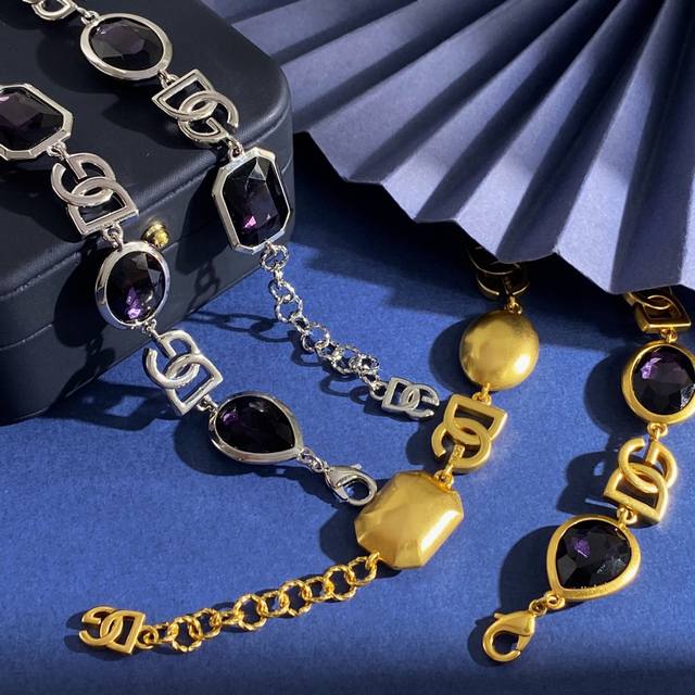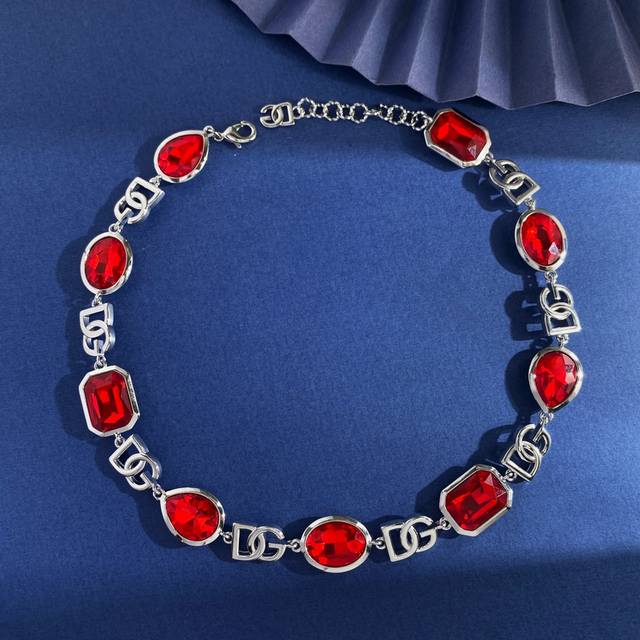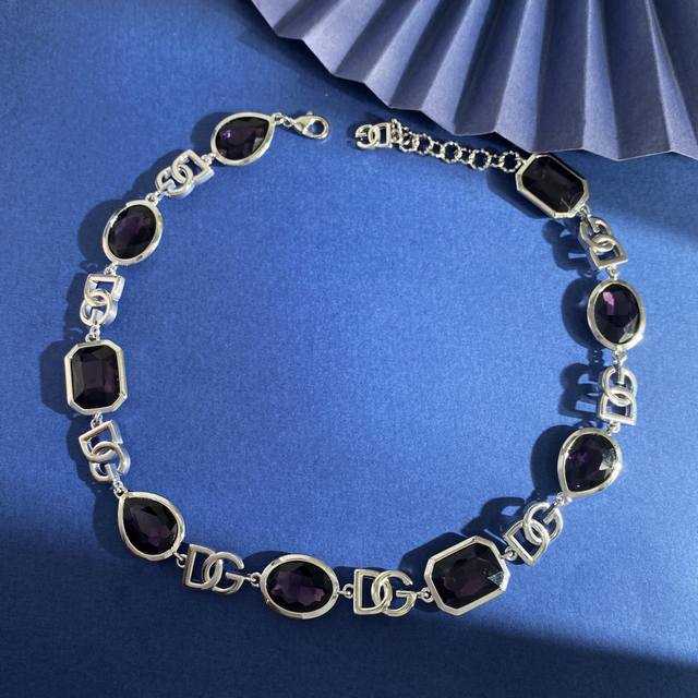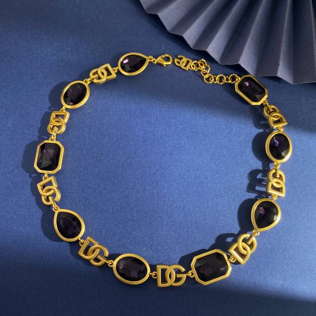 D&G European and American retro fashion polished Dg letter teardrop shaped diamond octagonal diamond luxury large gem crystal style necklace brass material 4 colors weight approximately 84.7g necklace length approximately 42.5cm + 6cm