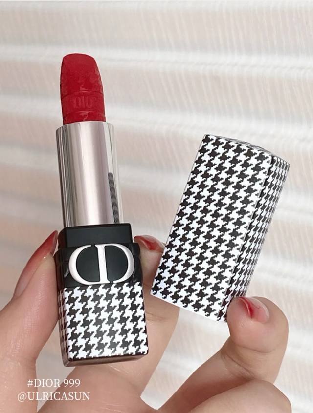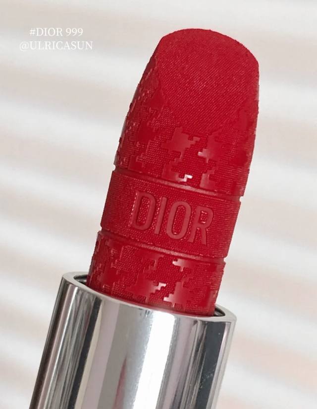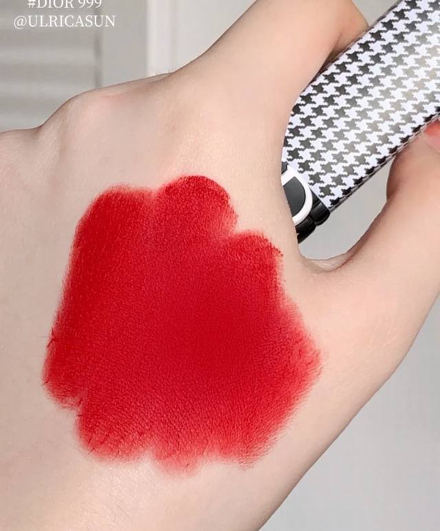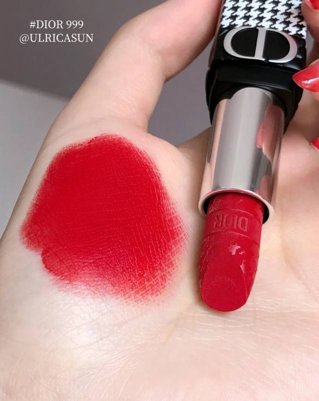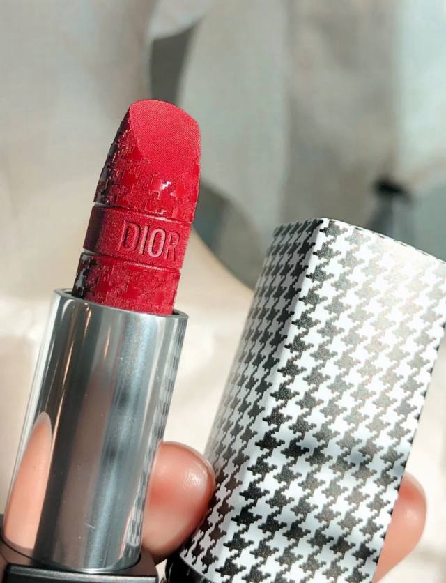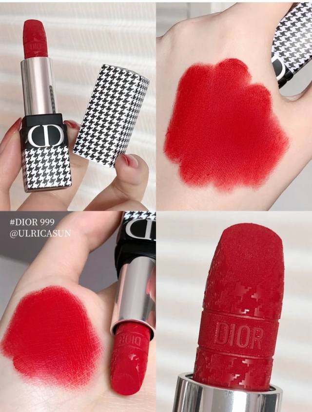 Dior Limited Edition Houndstooth Lipstick 999 Velvet - A true and warm red. If you're unsure which to choose, pick this one, you can't go wrong! The outer case feels luxurious in your hand, and the houndstooth embossed pattern on the lipstick itself is truly exquisite and beautiful.