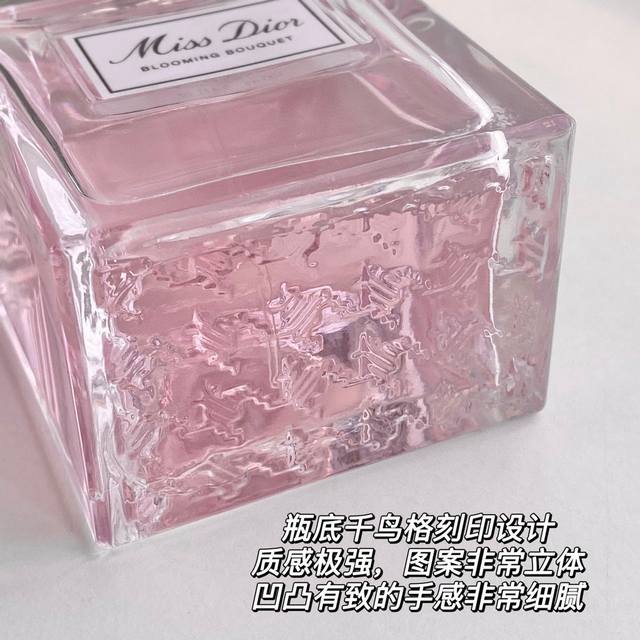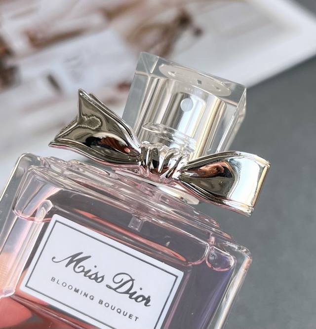 This Miss Dior Blooming Eau de Parfum is instantly feminine. The pale pink bottle, adorned with a delicate bow, is sweet, elegant, and instantly recognizable. The bottle design, inspired by haute couture, is sleek and sophisticated. The bow at the neck echoes the houndstooth pattern at the base, embodying elegance and captivating charm. The bow-shaped neckline is truly ceremonial, and the sweet, fruity scent is incredibly relaxing and long-lasting. The base notes linger all day, soft and romantic with just the right amount of sweetness, like a gentle, approachable, noble, and measured young lady from a wealthy family. A little too much would be too cloying, a little too little would be boring. Miss Dior Blooming Eau de Parfum opens with a refreshing Calabrian bergamot. The irresistible colliding of soft peony and Damascus rose is complemented by a gentle touch of white musk, seemingly overflowing with the soft warmth of spring. The elegant floral scent interweaves with the sweet fruity aroma, releasing a unique fragrance that is both romantic, soft, and playful. Together, with this floral fragrance, we compose a harmonious melody of flowers and experience the romance of spring.