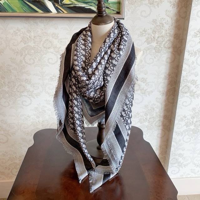A rare and limited edition Dior design with outstanding elegance! Featuring premium, special fabrics and the stunning Dior Oblique print, the fabric is made from 42% wool, 42% silk, and 16% cotton. The unique craftsmanship creates a classic and minimalist pattern, demonstrating the meticulous craftsmanship. This shawl looks simple, yet the process is complex! A true leader in luxury goods, this 100% square scarf design comes in navy blue, black, and gray.