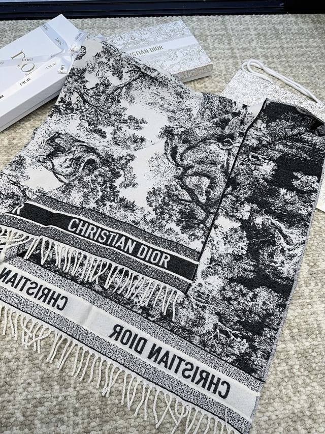 Animal Dior Jacquard Logo Print Large Square Scarf, Shawl, Blanket, 3-in-1. Material: 57% Cashmere, 43% Wool. Size: 140*140cm. A stunning piece! This is an authentic order, a beautiful piece from a foreign trade factory that received the order last year and shipped directly to the US. We've had our eye on this since the middle of last year, but the factory only released this small batch after a year due to a confidentiality agreement! Although the quantity is small, we're already satisfied to have received it. It uses 57% cashmere and 43% wool! Such a high proportion of cashmere is extremely rare! Cashmere is known worldwide as "soft gold," with a soft and delicate feel. This scarf is super large, measuring 140*140cm! It's double-sided woven. Look at the exquisite print; this isn't just a scarf, a blanket, or a luxury item
