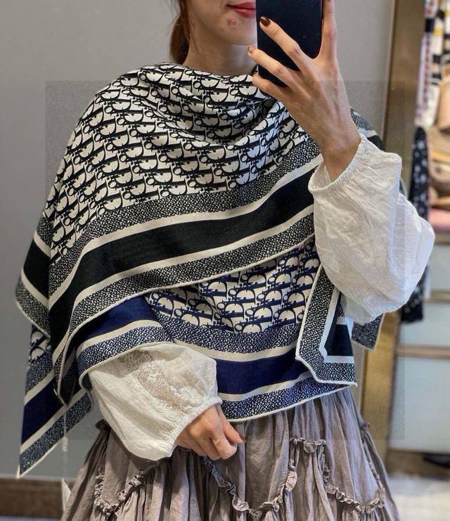 Cashmere scarves have a more fashionable twist! This Dior reversible shawl looks incredibly luxurious, exuding sophistication and a stylish, casual vibe!! The two-tone color blocking adds a dynamic touch to everyday outfits, and it can also be styled like a cape