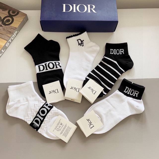 Comes with a box of 5 pairs of Dior's new calf socks! Made of pure cotton, featuring the iconic "D" pattern, these mid-calf socks are the same as the ones sold at the store. This designer is a must-have for trendsetters and is super easy to style.