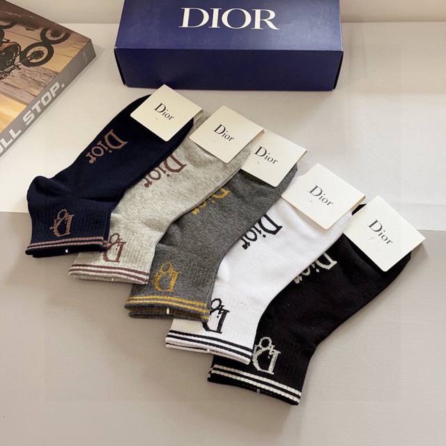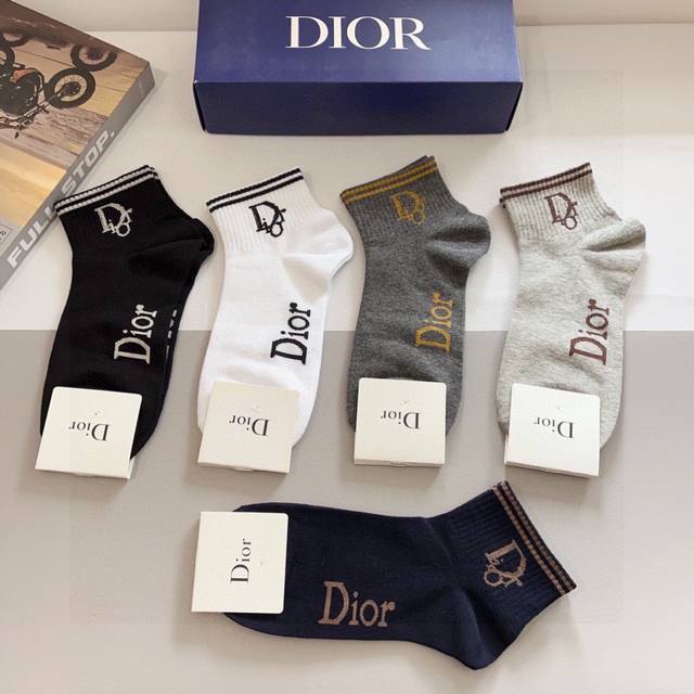 Comes With Packaging, One Box Contains 5 Pairs. Dior New Letter-Print Ankle Socks!Bestselling Letter-Print Socks, Same As Those Sold In Stores, Perfect For Fashionistas, And Extremely Versatile.