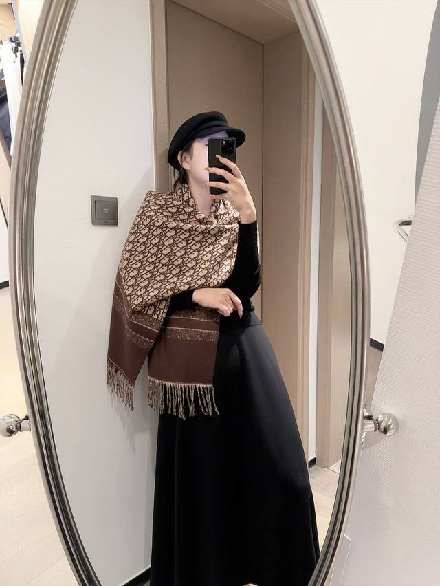 Dior 100% Cashmere Scarf! Stunning color scheme, hot-selling style, latest boutique design, super versatile cashmere! So elegant!! Absolutely love it! Made with imported cashmere from cashmere, such a high proportion of cashmere is truly rare. The entire piece is double-sided woven, making it the perfect choice whether as a scarf or a shawl.
