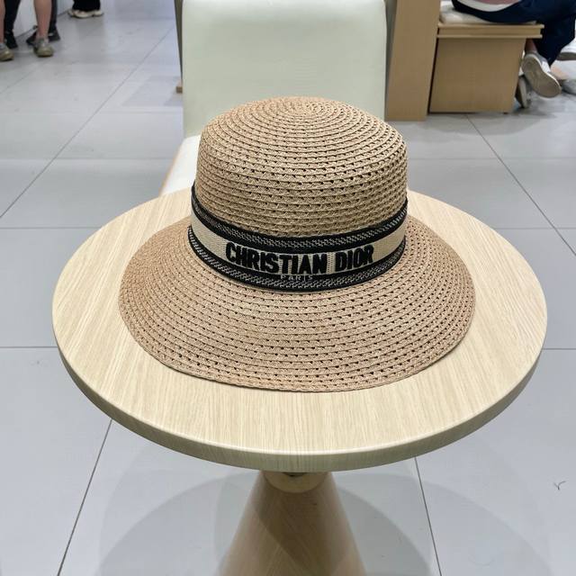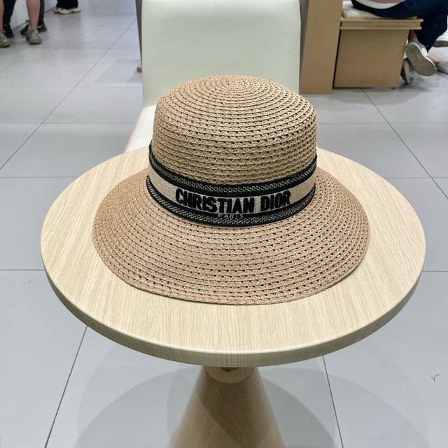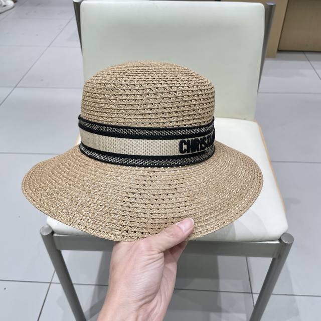 Dior 2025 new straw hat women's bucket hat sun protection sun hat straw raffia m
