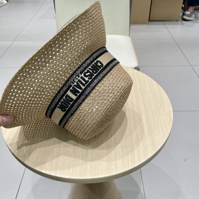 Dior Raffia Straw Flat-Brimmed Straw Hat For Women, Summer French-Style Flat-Top