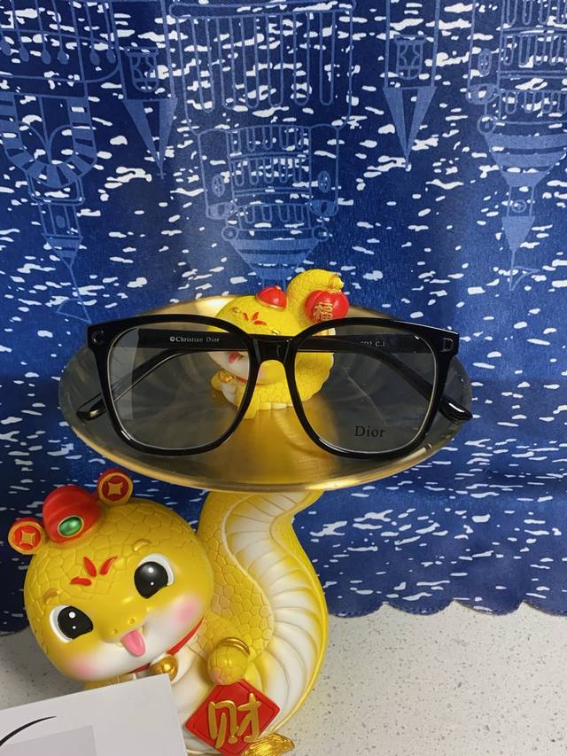 Dior 2025 New Style Plain Black Framed Glasses for Women, Korean Style, D-Shaped Design, Face-Slimming, Gray Anti-Blue Light Plain Glasses, Photochromic Prescription Glasses, Unisex,