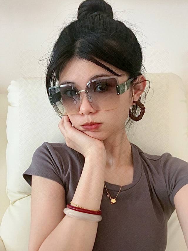 Dior 2025 new women's square frame sunglasses driving sunglasses new metal frameless sunglasses fashionable and generous comfortable lightweight luxury ultra-light model: Cd1514