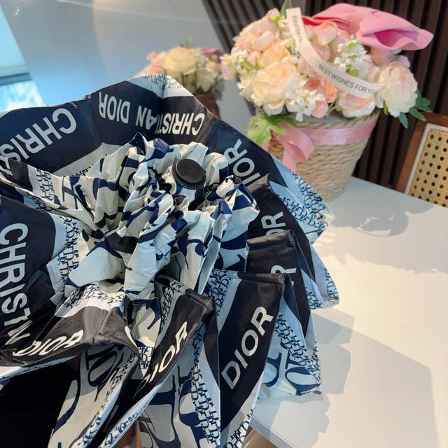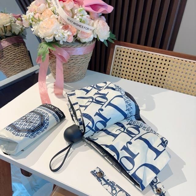 Dior 50% folding umbrella, ultra-light, pocket only 18cm, hot-selling model with an extremely fashionable index, perfect for use in both sunny and rainy days. Original OEM factory p-level quality, ultra-light aluminum alloy ribs, imported UV-resistant umbrella cloth, all made of lightweight materials, which reduces the weight of the bag and makes it easier to carry, making it convenient to go out.