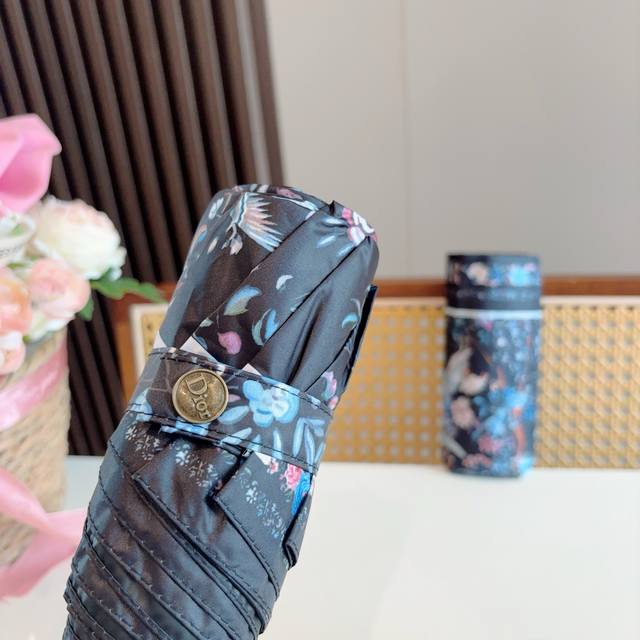 Dior 50% folding umbrella, ultra-light, pocket only 18cm, hot-selling model with an extremely fashionable index, perfect for use in both sunny and rainy days. Original OEM factory p-level quality, ultra-light aluminum alloy ribs, imported UV-resistant umbrella cloth, all made of lightweight materials, which reduces the weight of the bag and makes it easier to carry, making it convenient to go out.