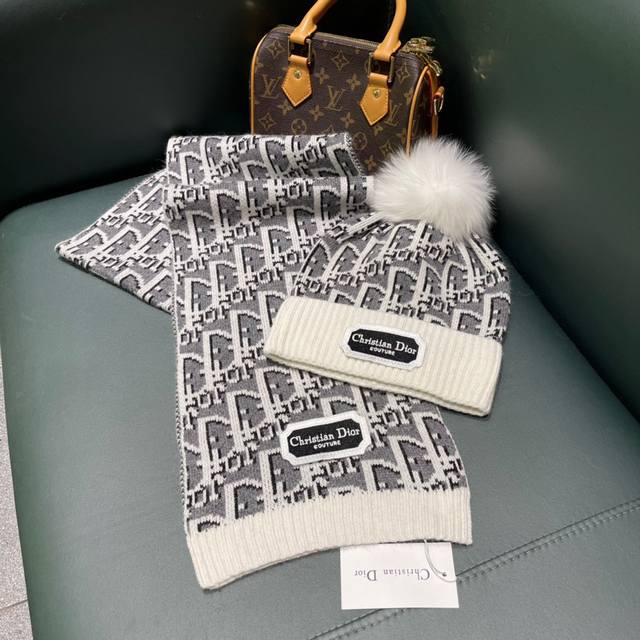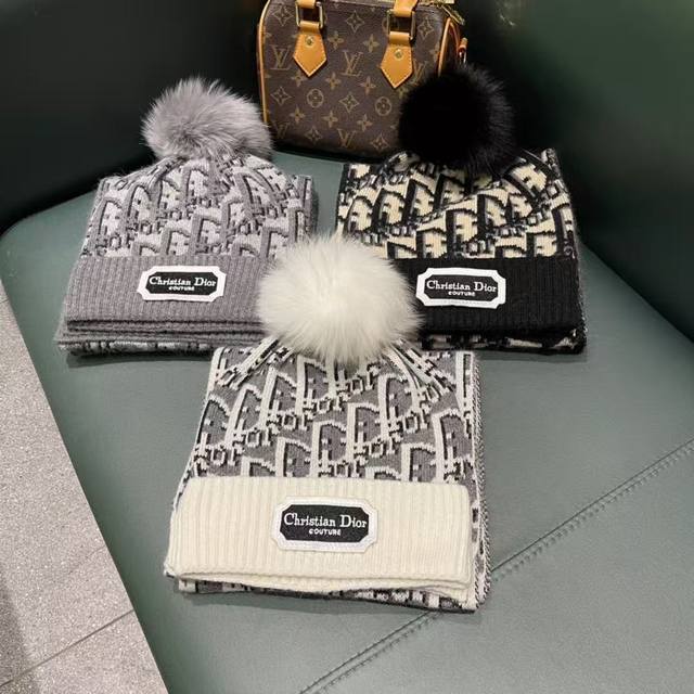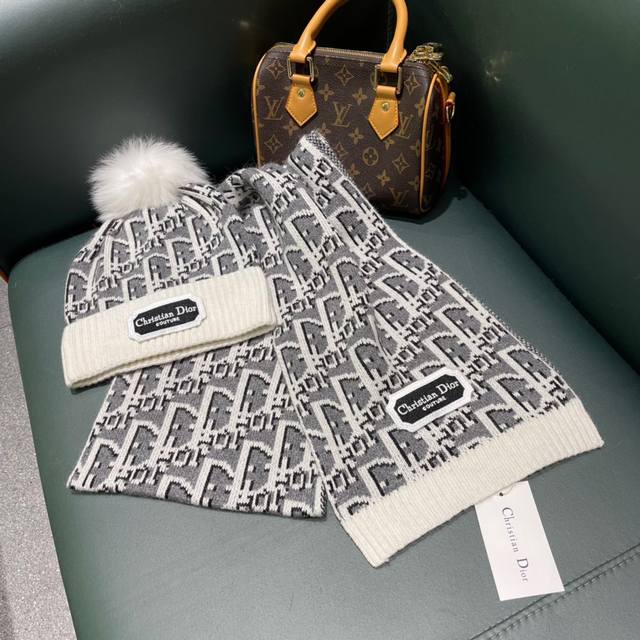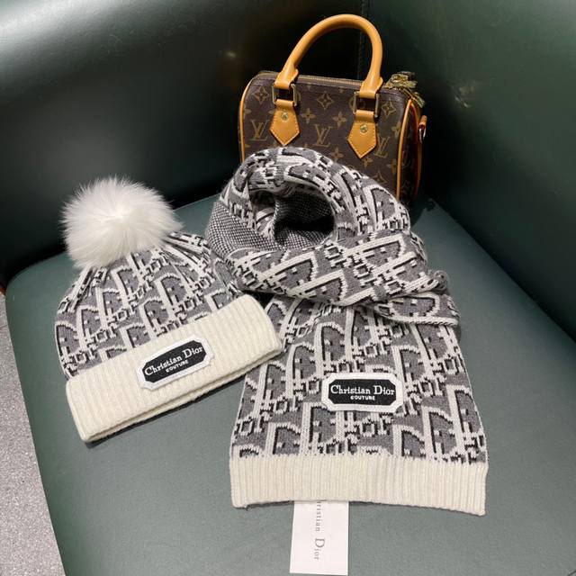 Dior classic hat set! Hat and scarf! Cashmere and rabbit fur quality! Warm and super comfortable ~ Winter sister age-reducing magic tool ~ This winter, you need a hat set like this ~ Warm and stylish! Unisex style
