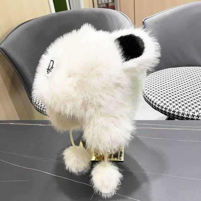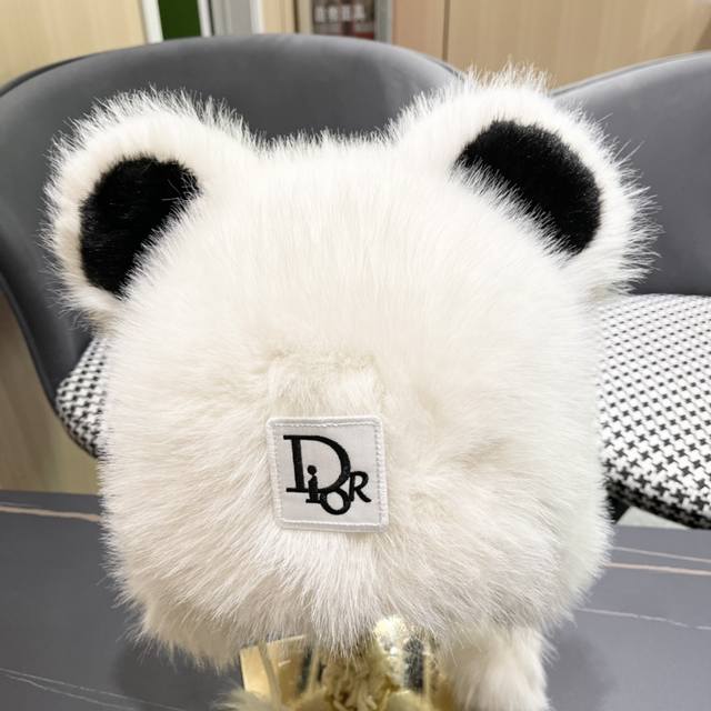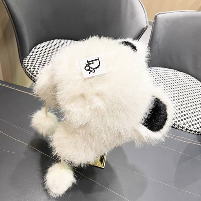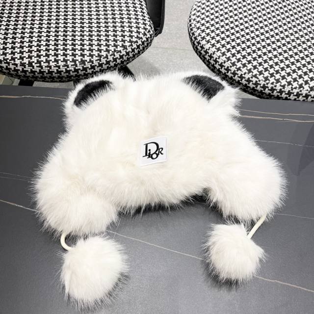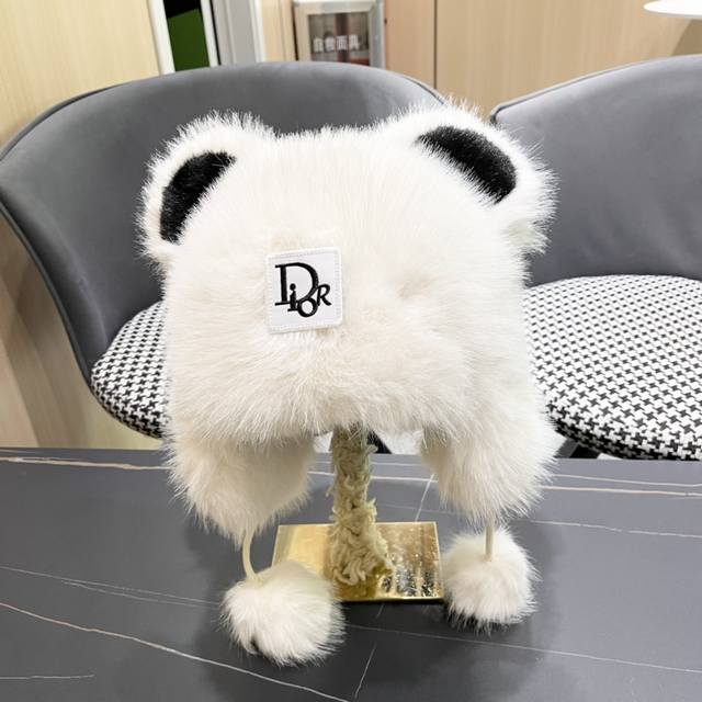 / Dior Cute Panda Ears Fleece-Lined Thick Knitted Wool Hat, Warm and Cute, Earflap