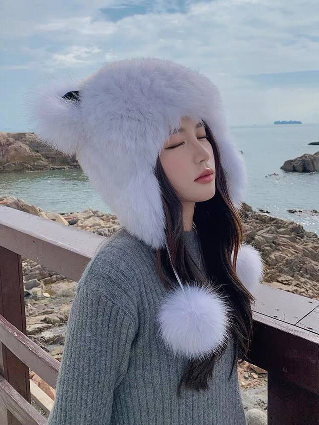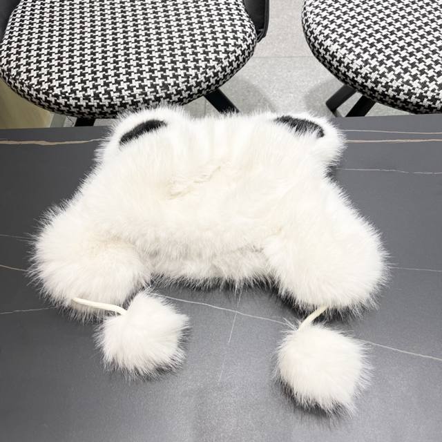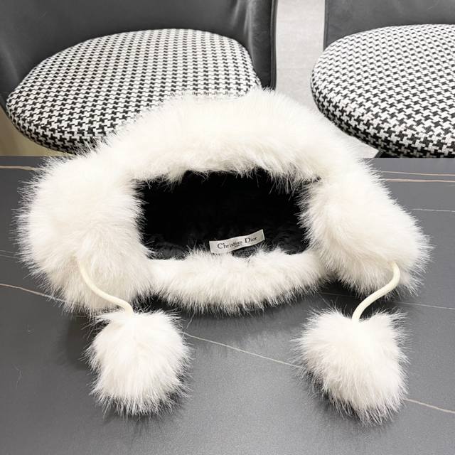 Dior Cute Panda Ears Fleece-Lined Thick Knitted Wool Hat, Warm and Cute, Earflap Hat, Lei Feng Hat