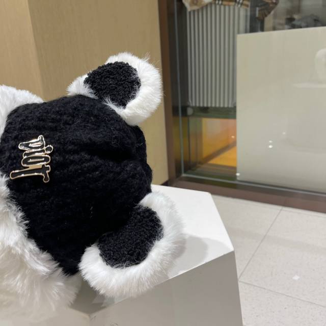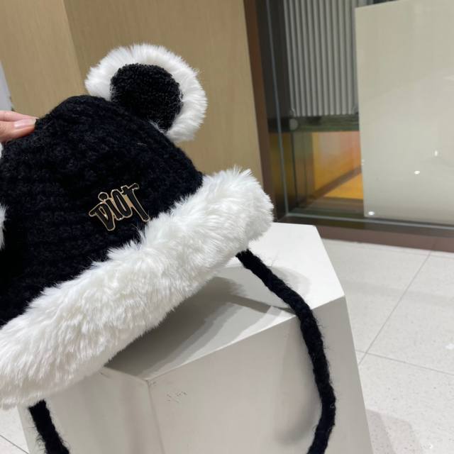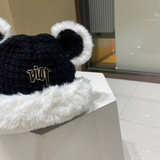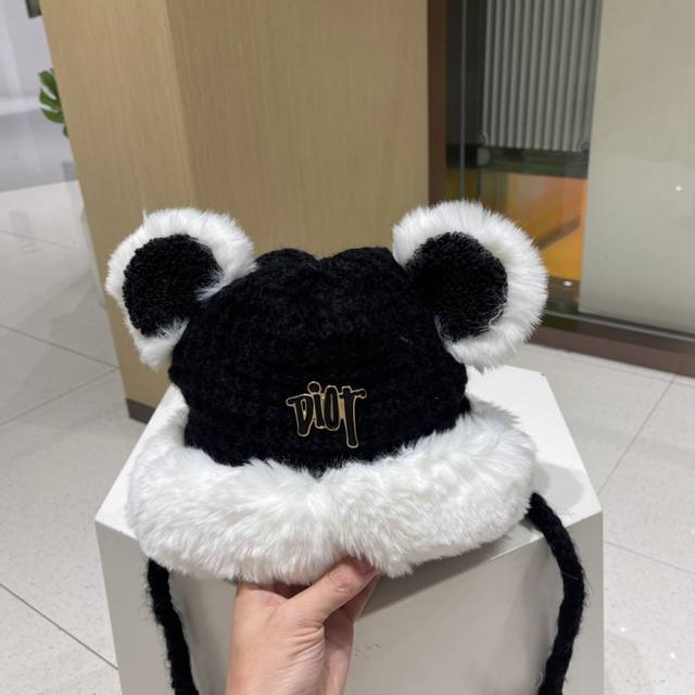 Dior Dior big ears plus velvet thickened knitted wool hat warm cute earmuffs Lei