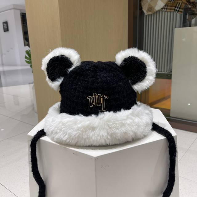 / Dior Dior big ears plus velvet thickened knitted wool hat warm cute earmuffs Lei