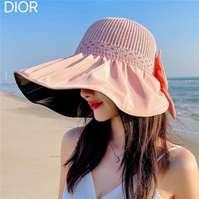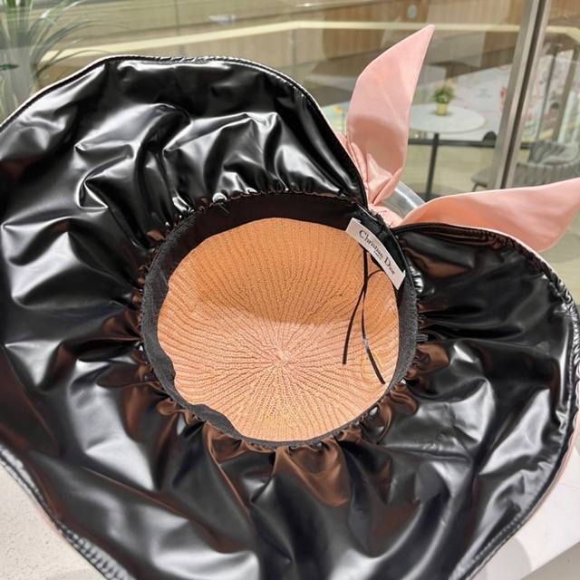 Dior Dior summer vinyl bow fisherman hat women's UV protection large brim face covering sun hat