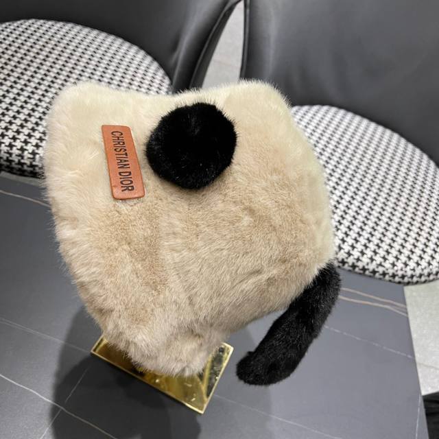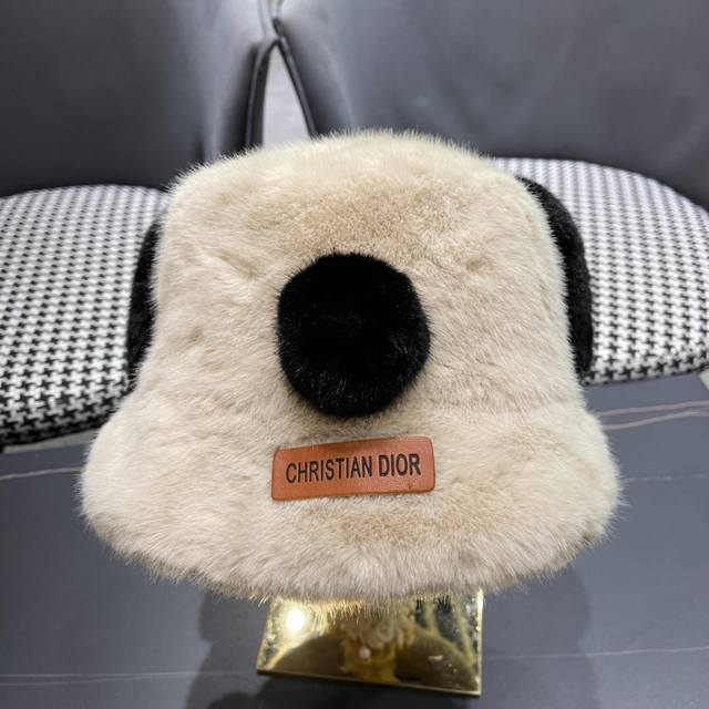 Dior Dior winter cute puppy big ears plus velvet thickened knitted wool hat warm Lei Feng hat