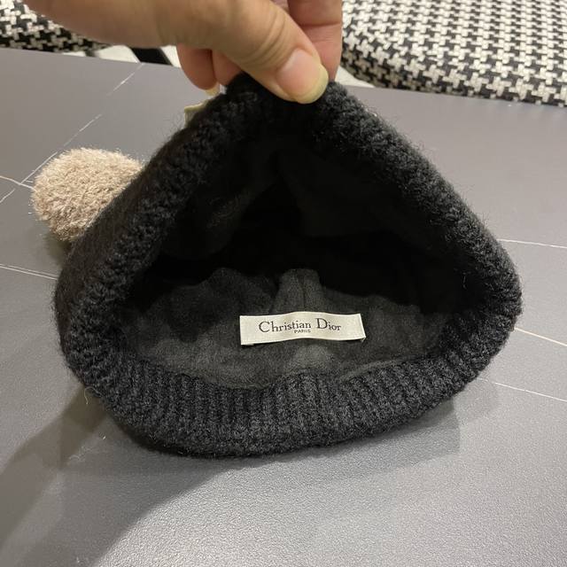 Dior Dlor hat women's autumn and winter cute horn plush season thick warm ear p
