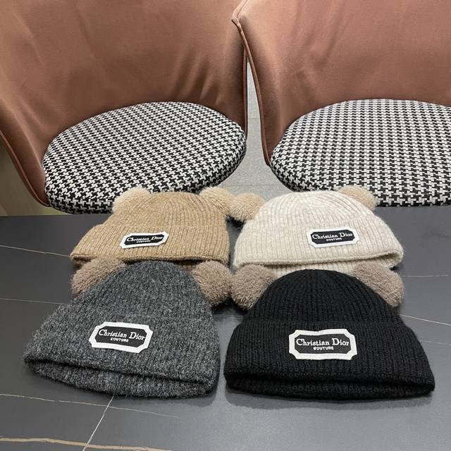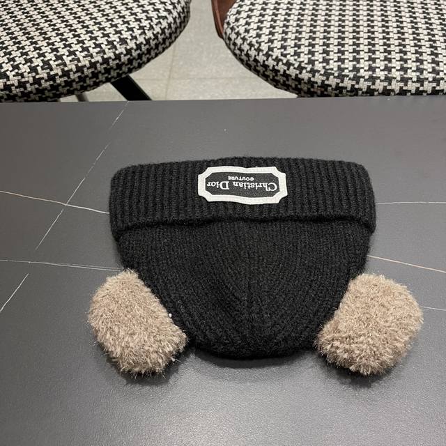 / Dior Dlor hat women's autumn and winter cute horn plush season thick warm ear p