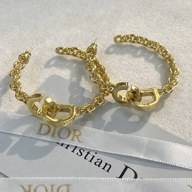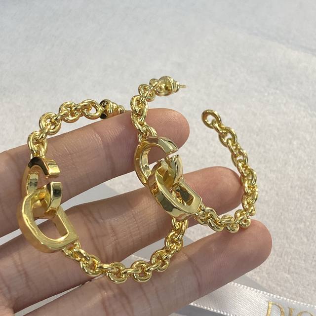 Dior gold chain three-dimensional letter earrings