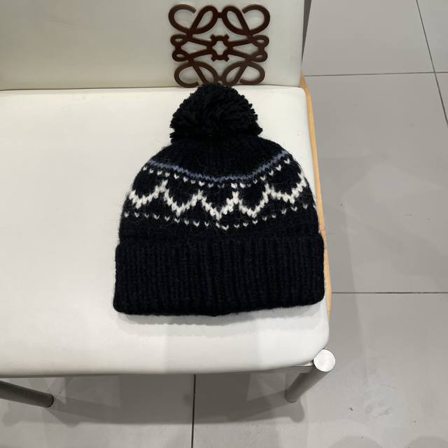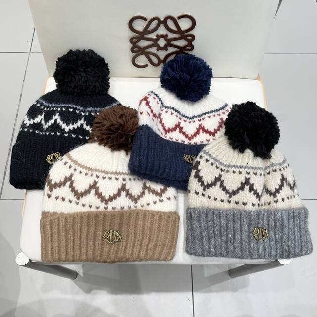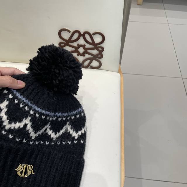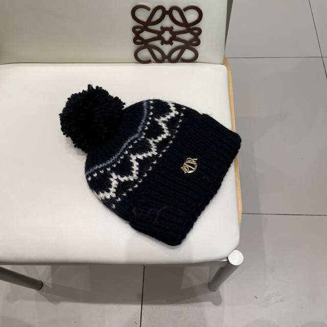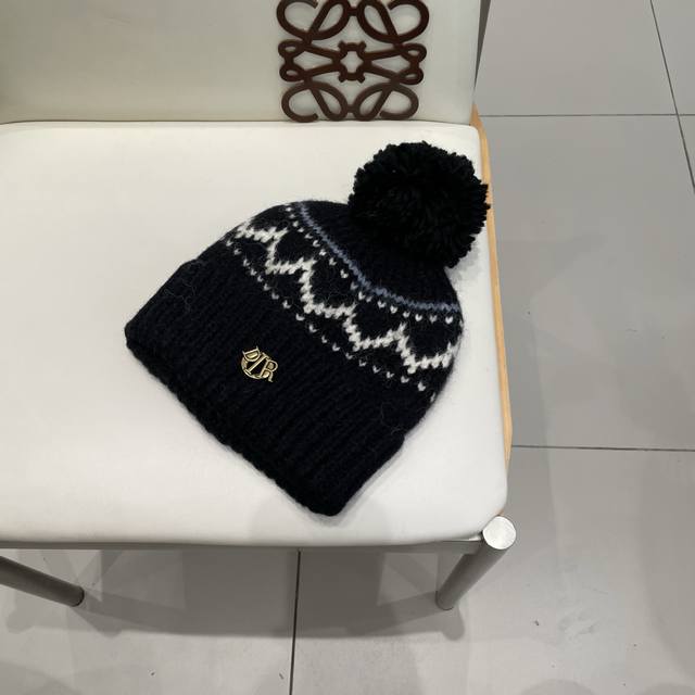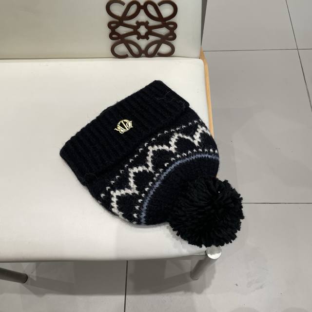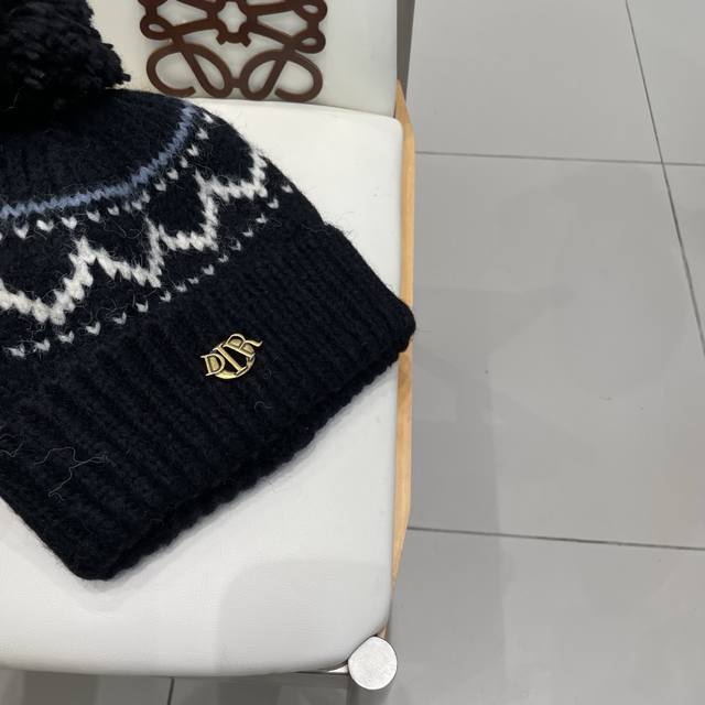 / Dior Fair Isle style jacquard pom-pom wool hat for women, autumn and winter warm