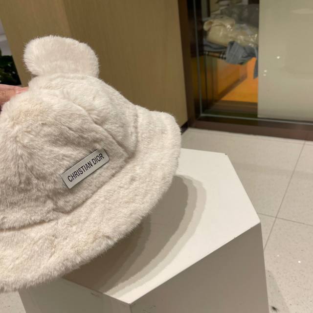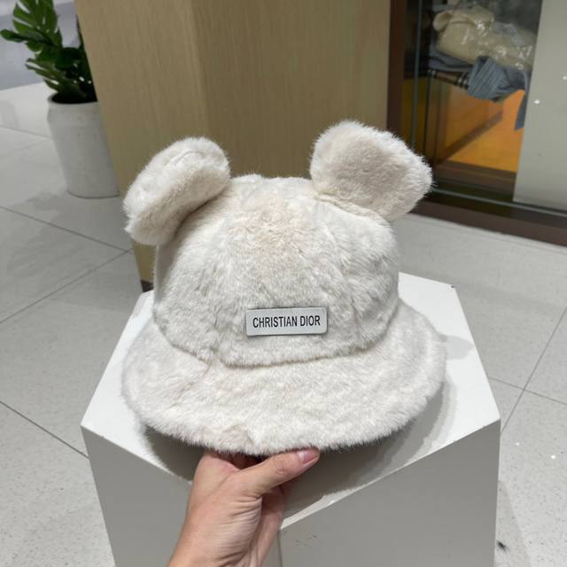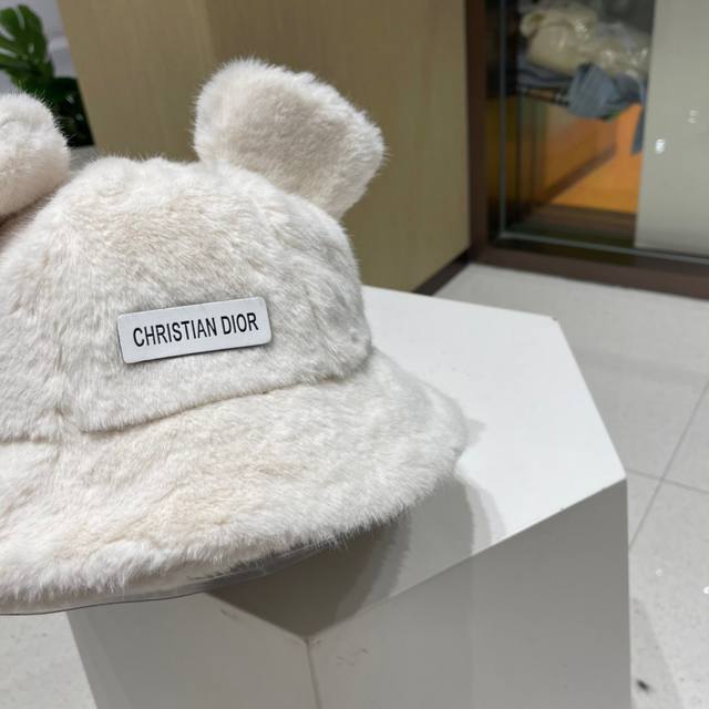 Dior fluffy bucket hat, cute winter bear ears, fluffy and versatile autumn and winter style, women's winter style.