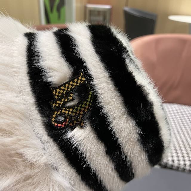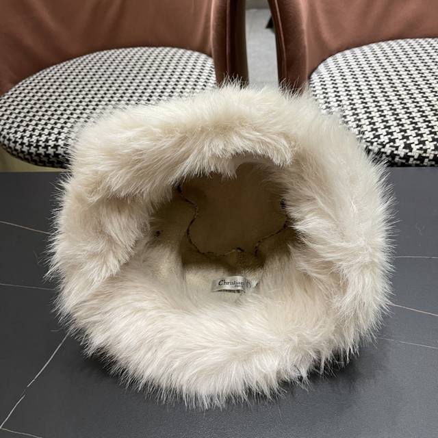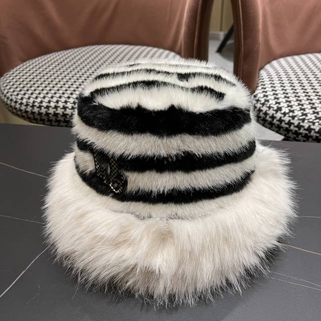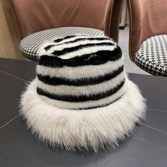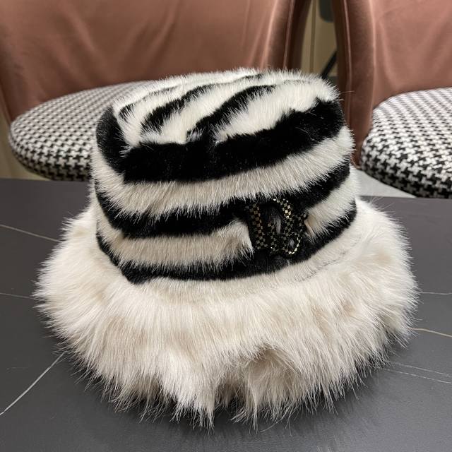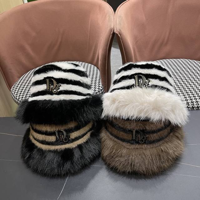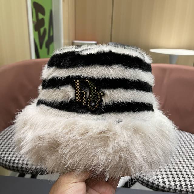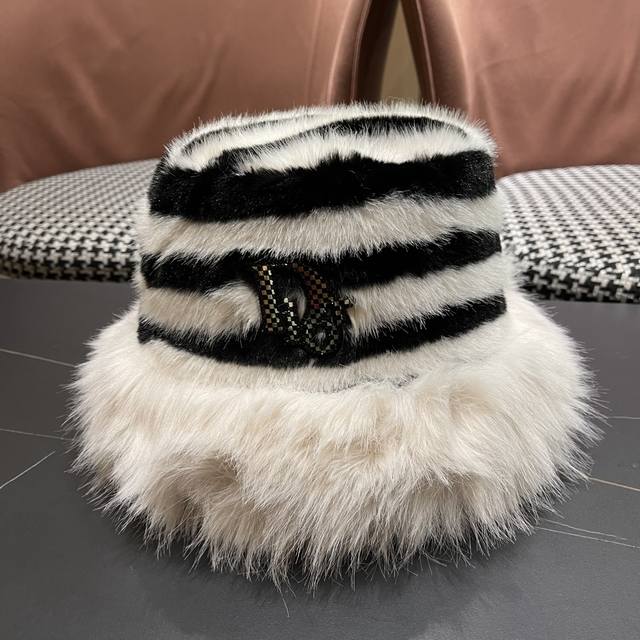 Dior fluffy striped bucket hat, winter style, versatile bucket hat for autumn and winter, women's winter style.