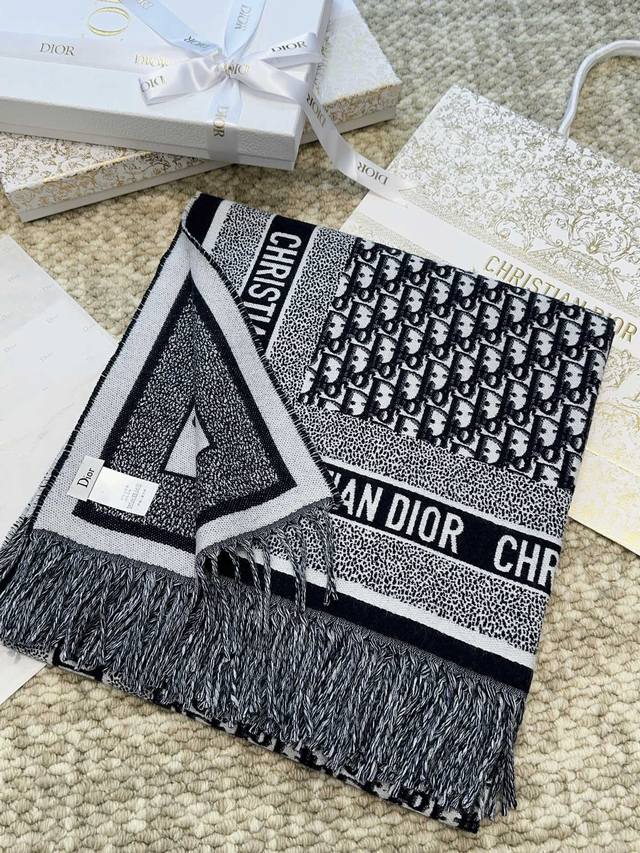 Dior Jacquard Logo Print Large Square Scarf, Shawl, Blanket, 3-in-1. Material: 57% Cashmere, 43% Wool. Size: 140*140cm. A stunning piece! This is an authentic order, a beautiful piece from a foreign trade factory that received the order last year and shipped directly to the US. We've had our eye on this since the middle of last year, but the factory only released this small batch after a year due to a confidentiality agreement! Although the quantity is limited, we're already very happy to have received it. It uses 57% cashmere and 43% wool! Such a high proportion of cashmere is extremely rare! Cashmere is known worldwide as "soft gold," with a soft and delicate feel. This scarf is super large, measuring 140*140cm! It's double-sided woven, and look at the exquisite print